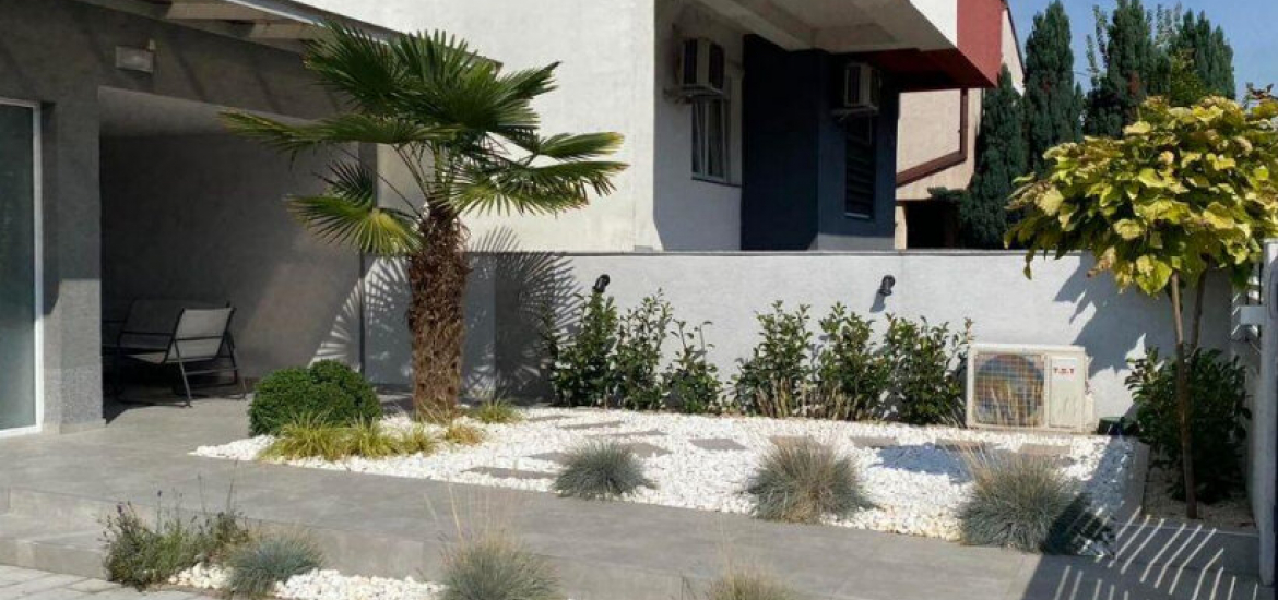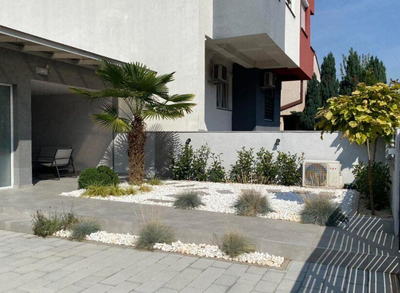 На располагање има хортикултурно уреден двор од 100м2 со две паркинг места.