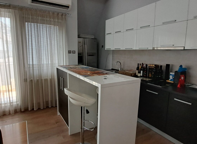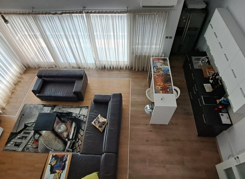 Втор кат - голема дневна соба со излез на тереса, кујна, 2 детски соби со излез на тераса, бања и скали кои поврзуваат со галерија.