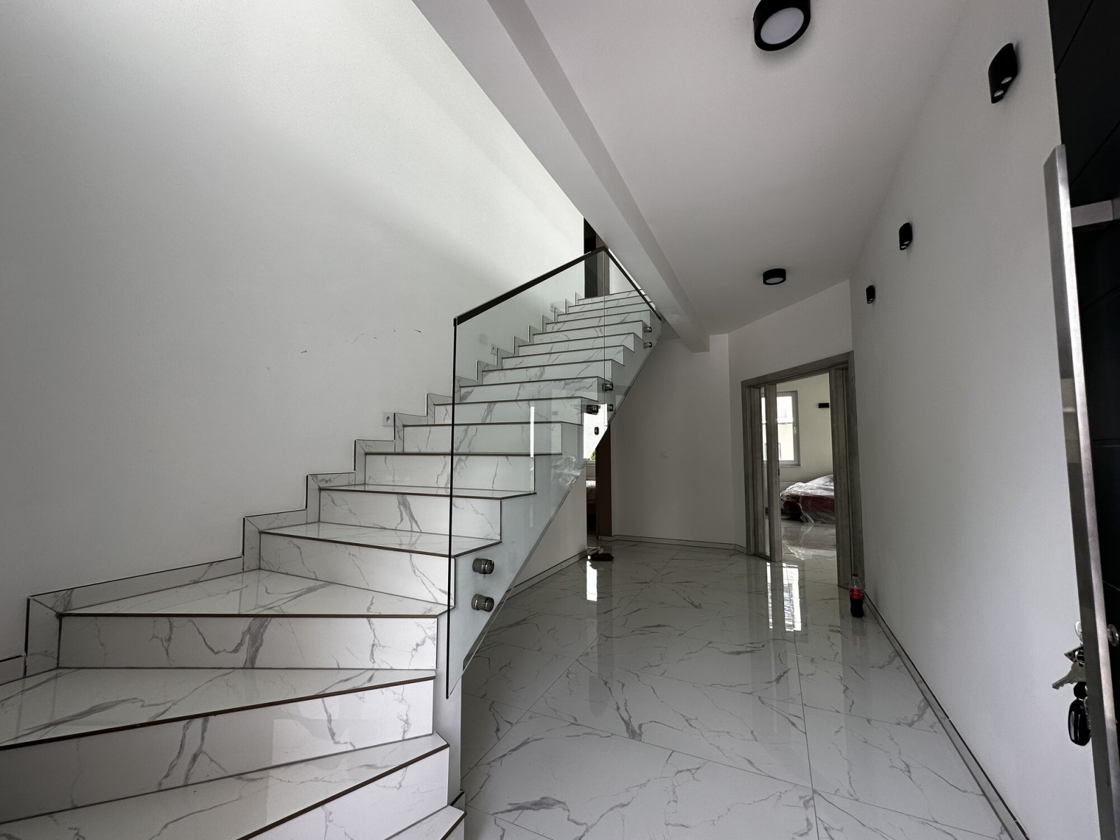 Куќата располага со внатрешна површина од 400м2, поделена на два ката: