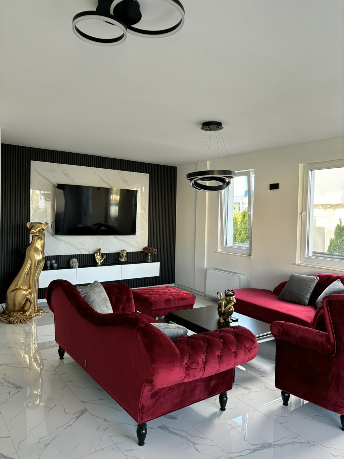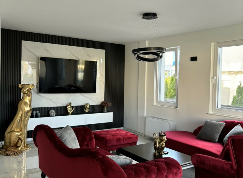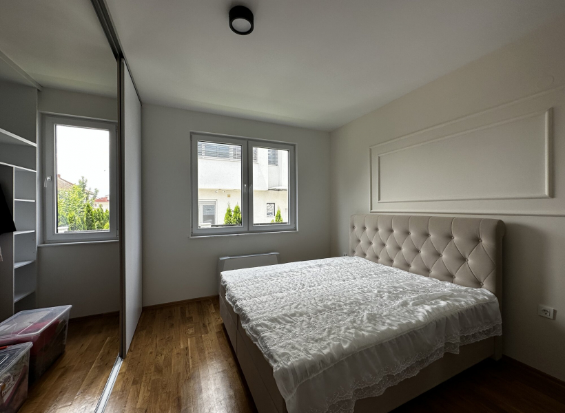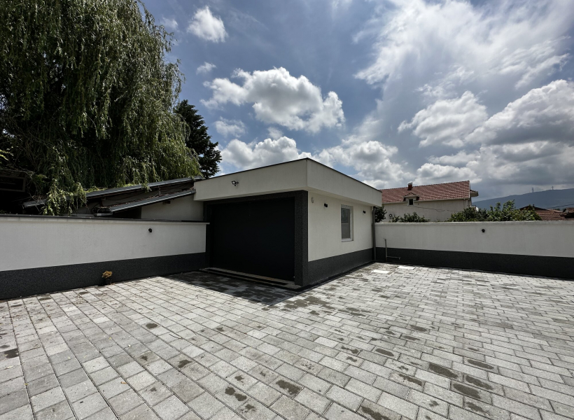 Се изнајмува нова модерна куќа на мирна локација во Бардовци, со прекрасен, хортикултурно уреден двор со површина од 660м2.