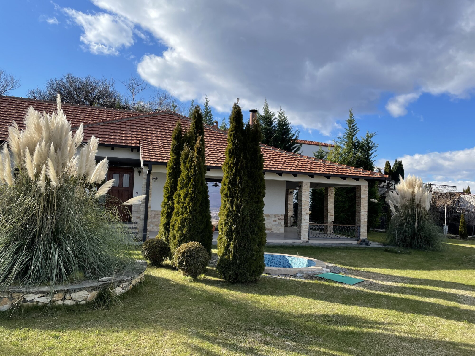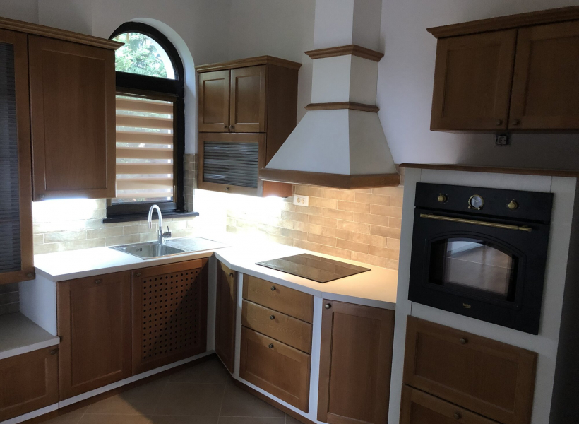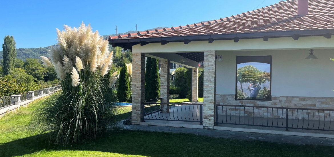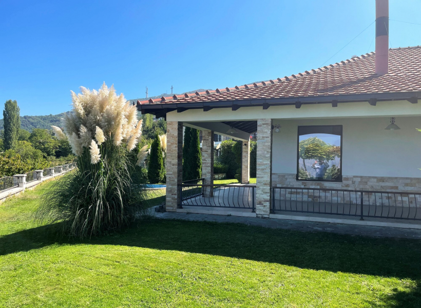Куќата располага со вкупна површина од 220м2, како и прекрасен, хортикултурно уреден двор од 600м2 со базен.