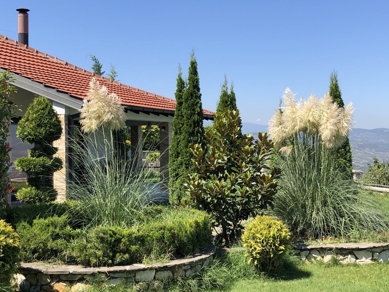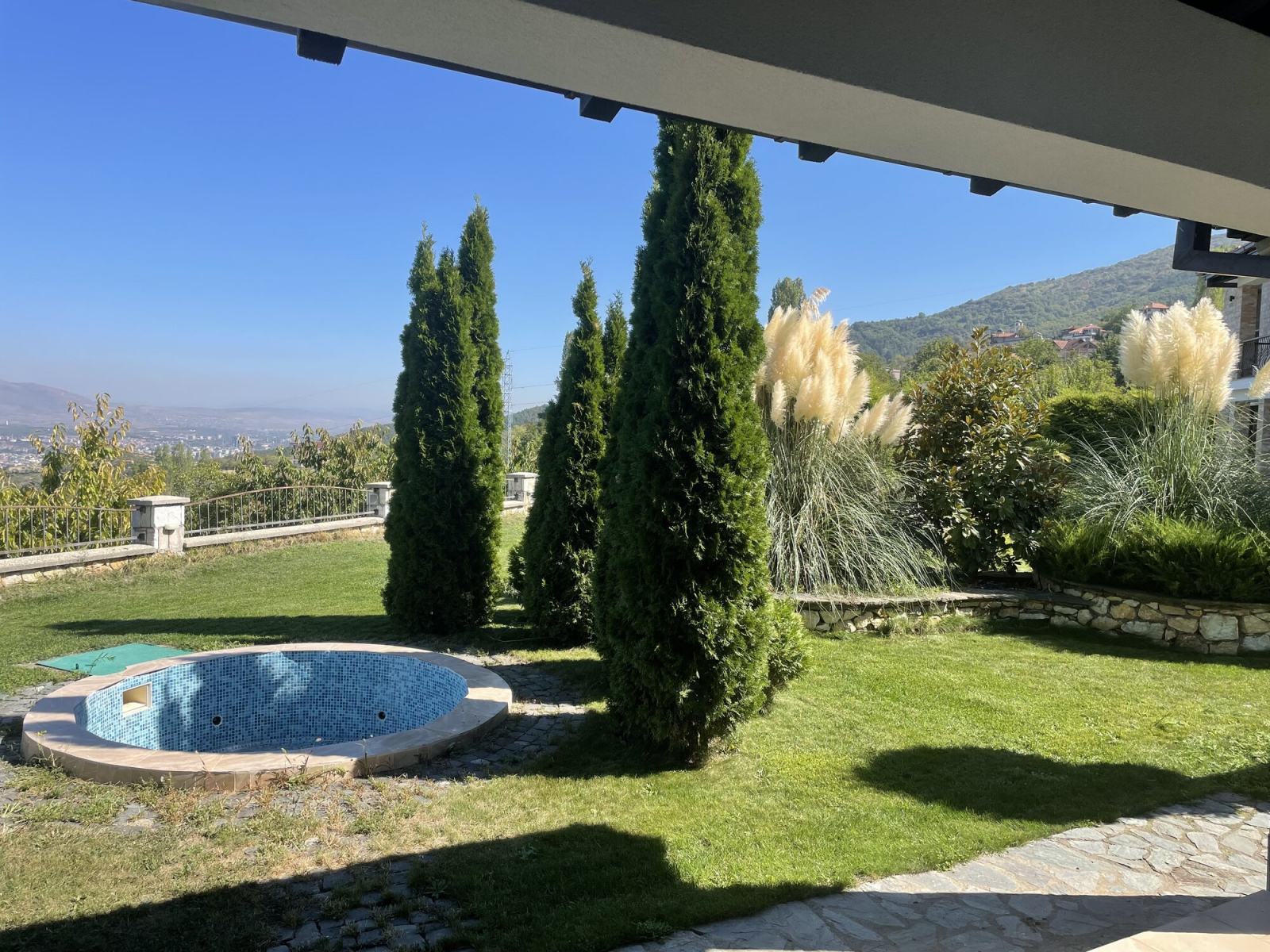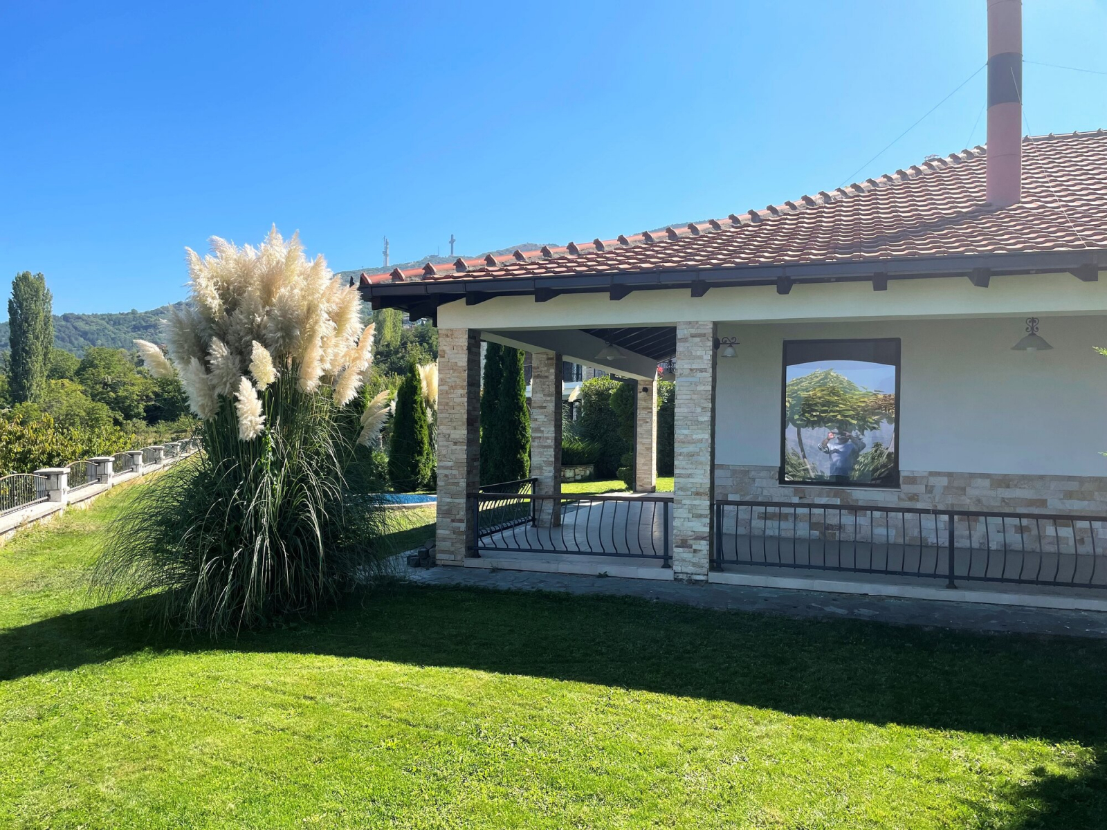Куќата располага со вкупна површина од 220м2, како и прекрасен, хортикултурно уреден двор од 600м2 со базен.