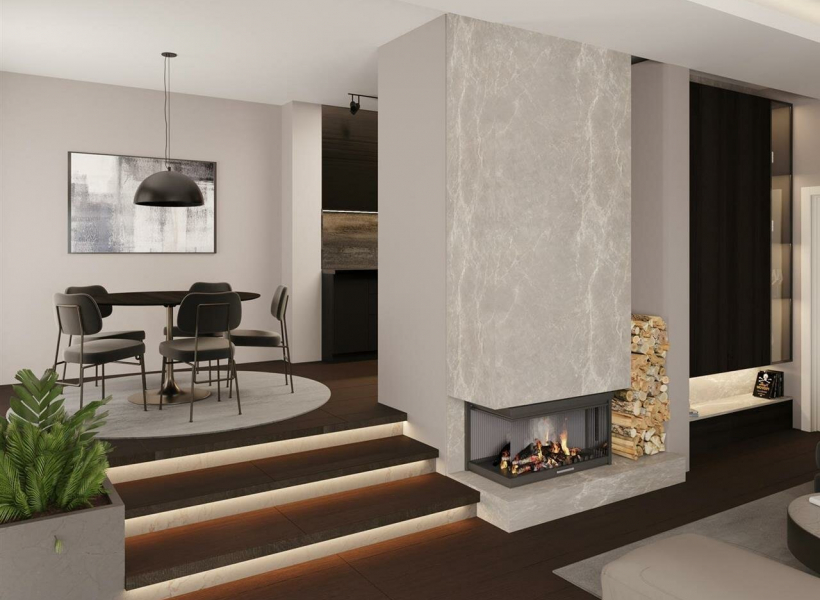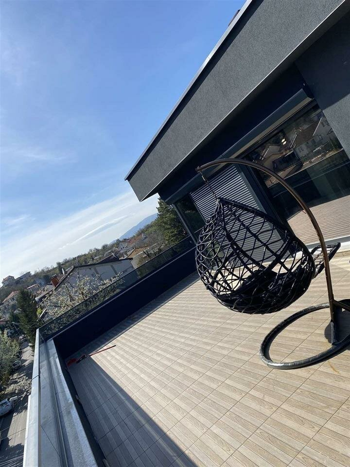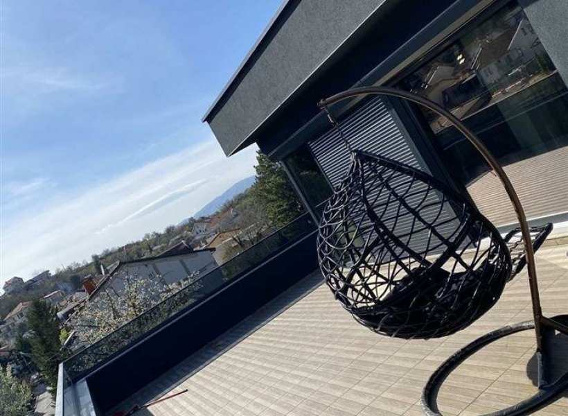 Ниво - 2 кат, дневна соба со трпезарија и кујна, бања и отворена тераса од 50 м2 со хортикултурни површини, џакузи.