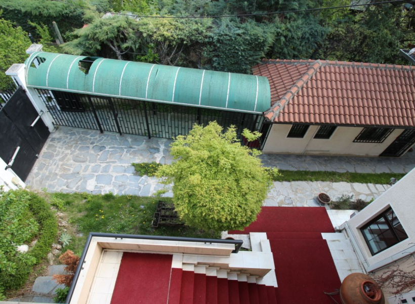 Куќата располага со голем капацитет на паркинг места и внатрешен простор распространет на 1000м2 и дворна површина заедно со помошниот објект предвиден за аплицирање за виза.