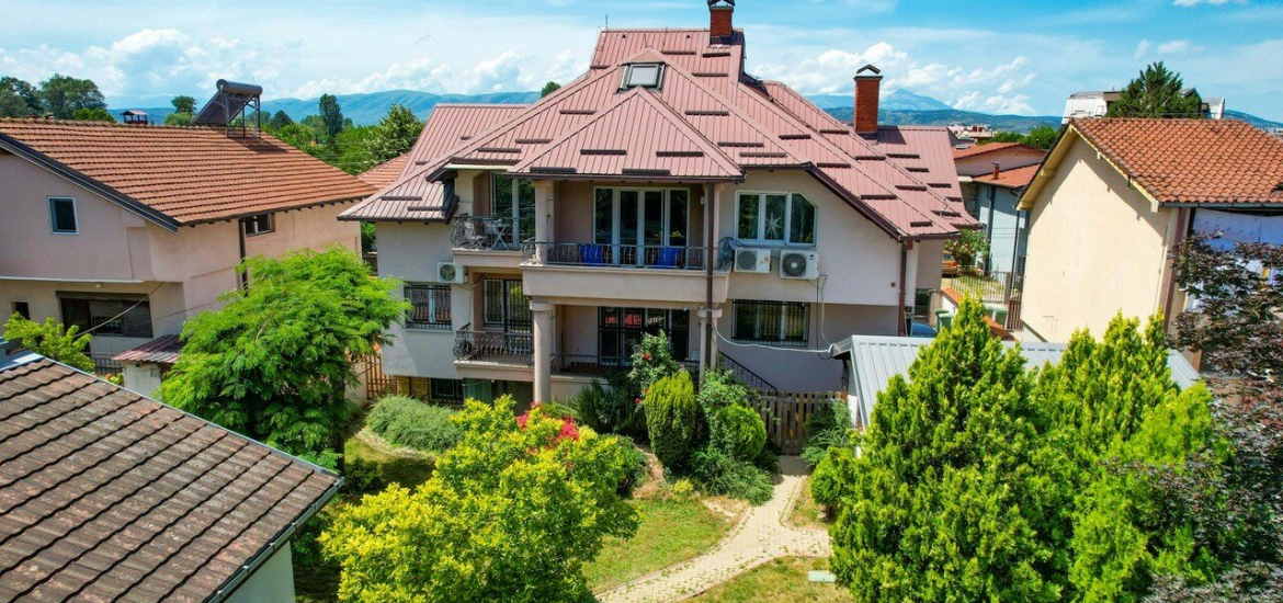 • Кат 2: 115м2, дневна соба, три спални соби, две бањи и еден тоалет, тераса.
