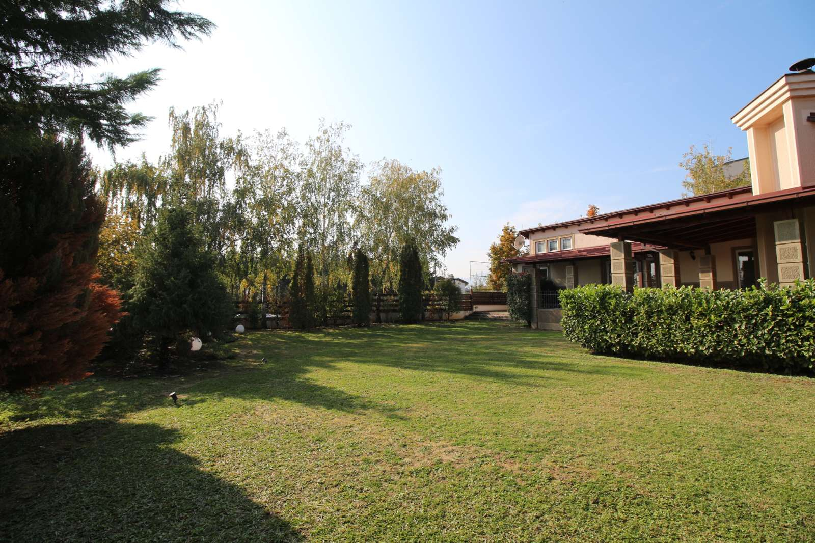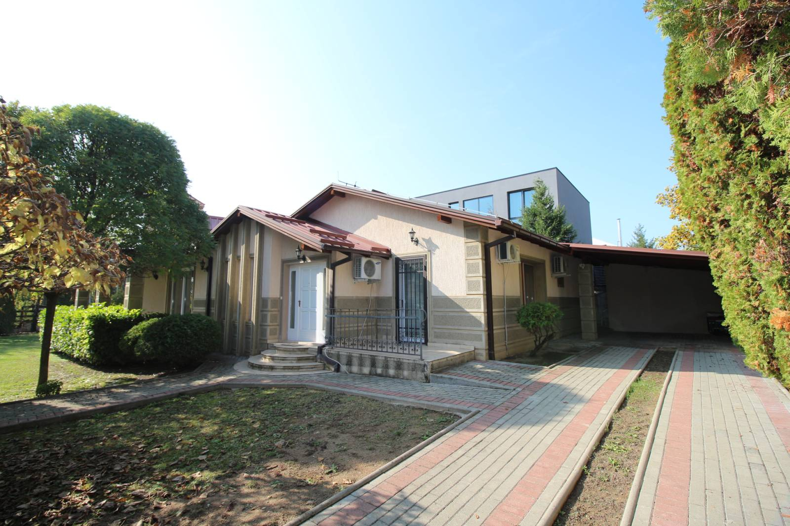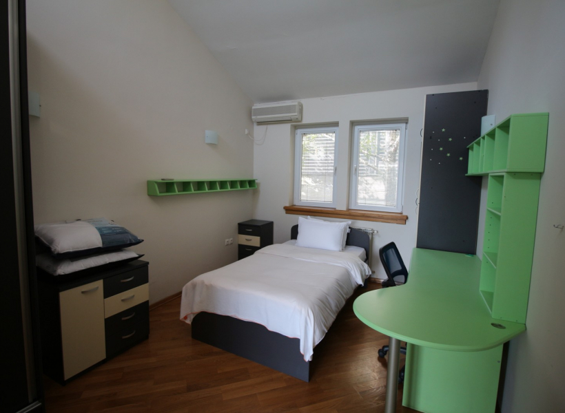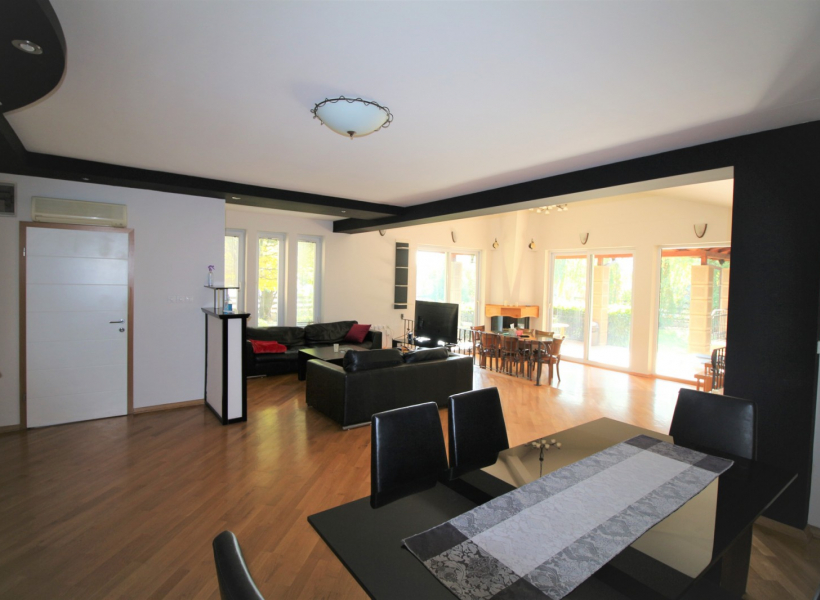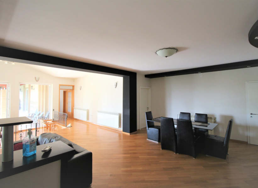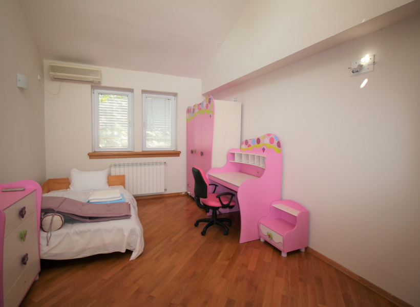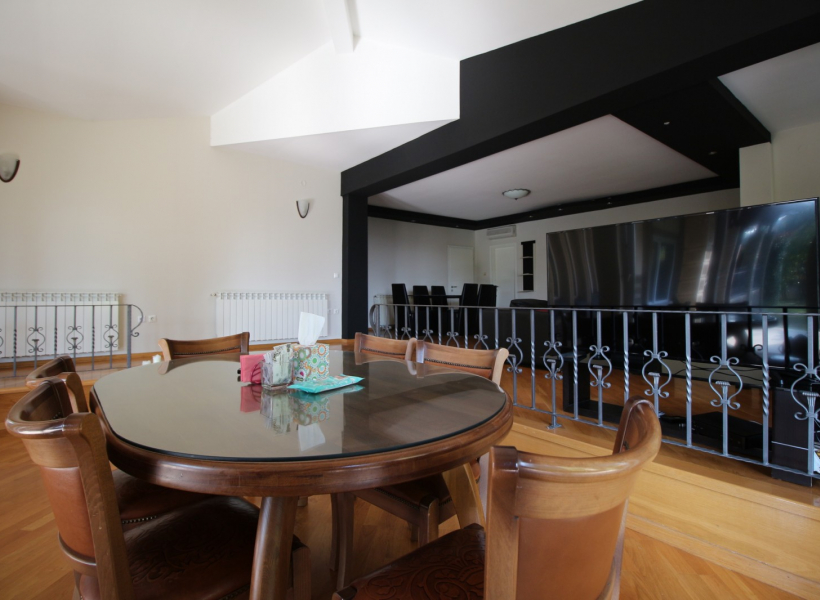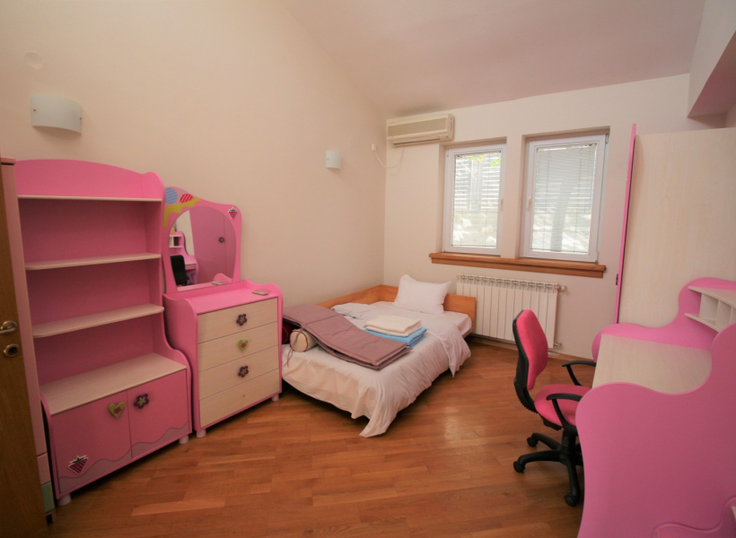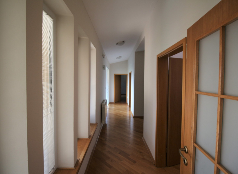 Куќата располага со четири спални соби, просторна дневна соба заедно со трпезариска маса, 4 тоалети, работна соба и остава.