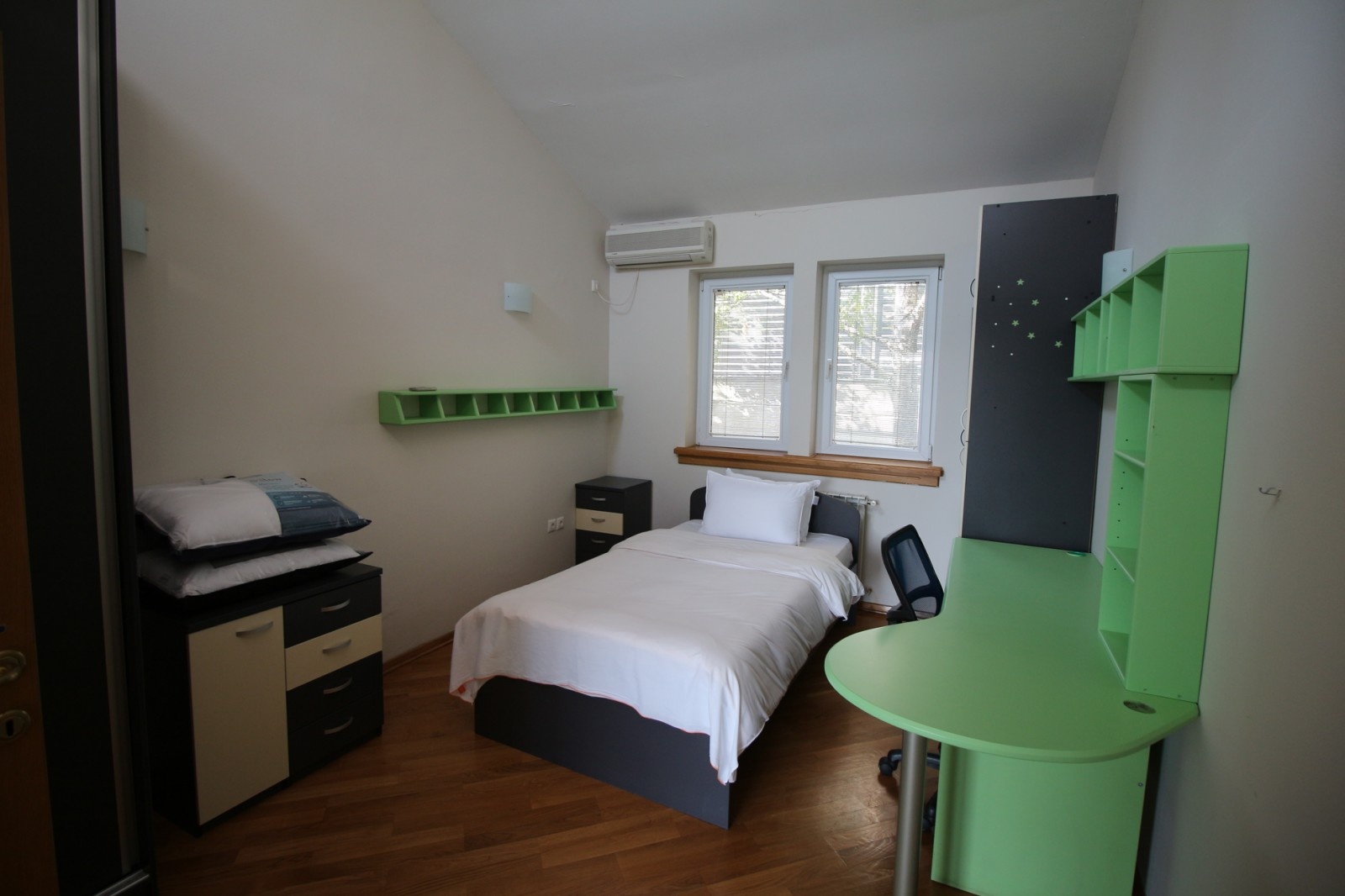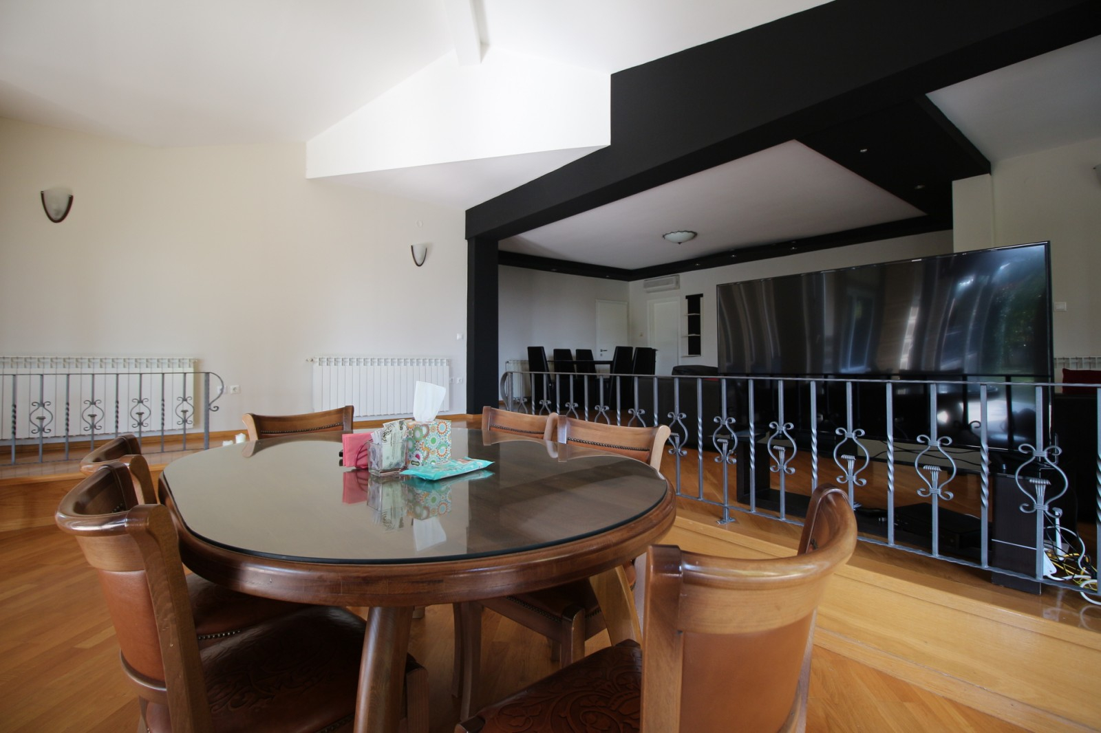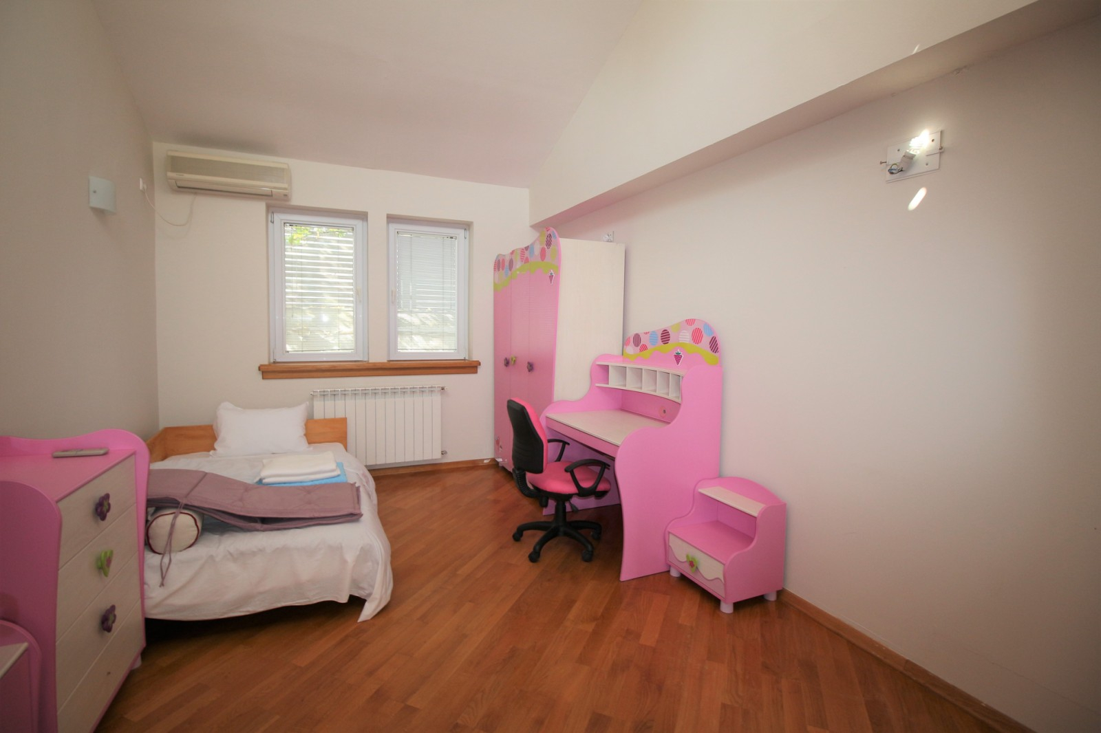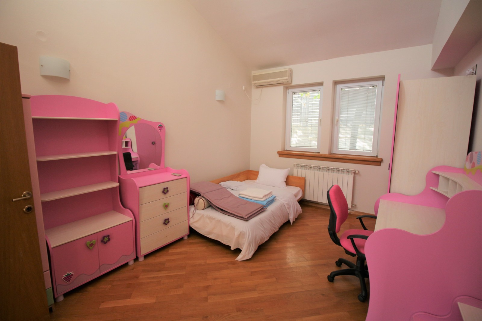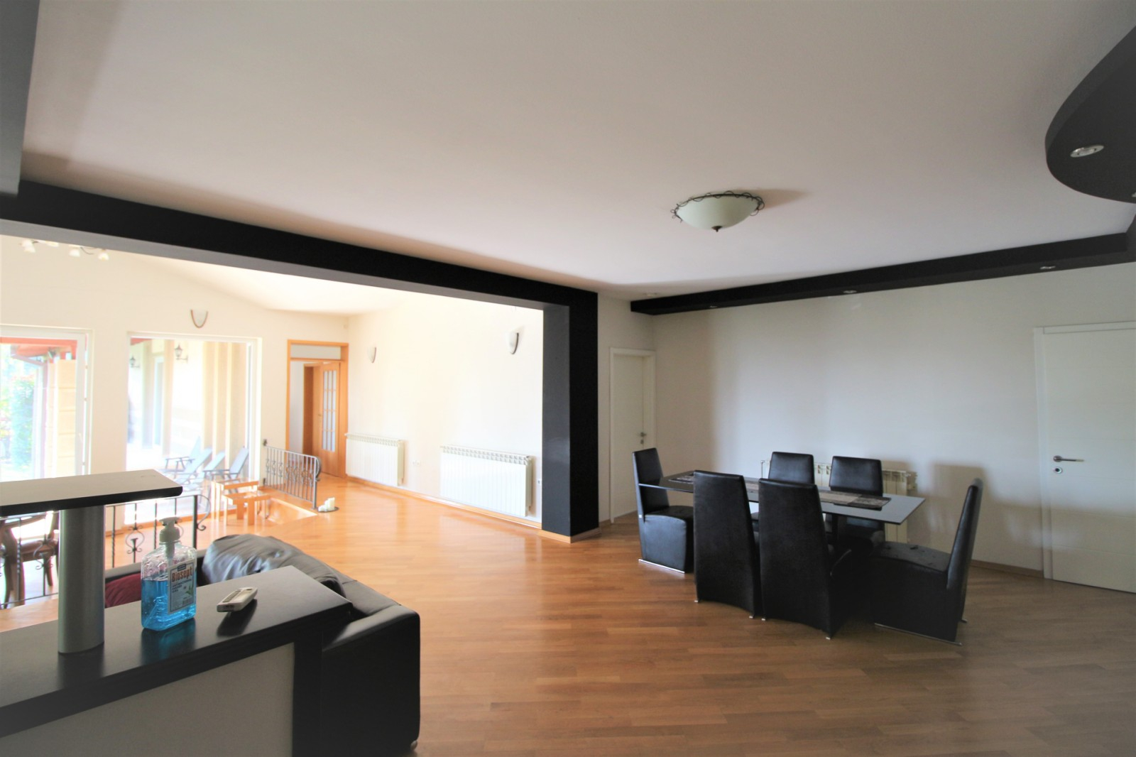 Куќата располага со четири спални соби, просторна дневна соба заедно со трпезариска маса, 4 тоалети, работна соба и остава.