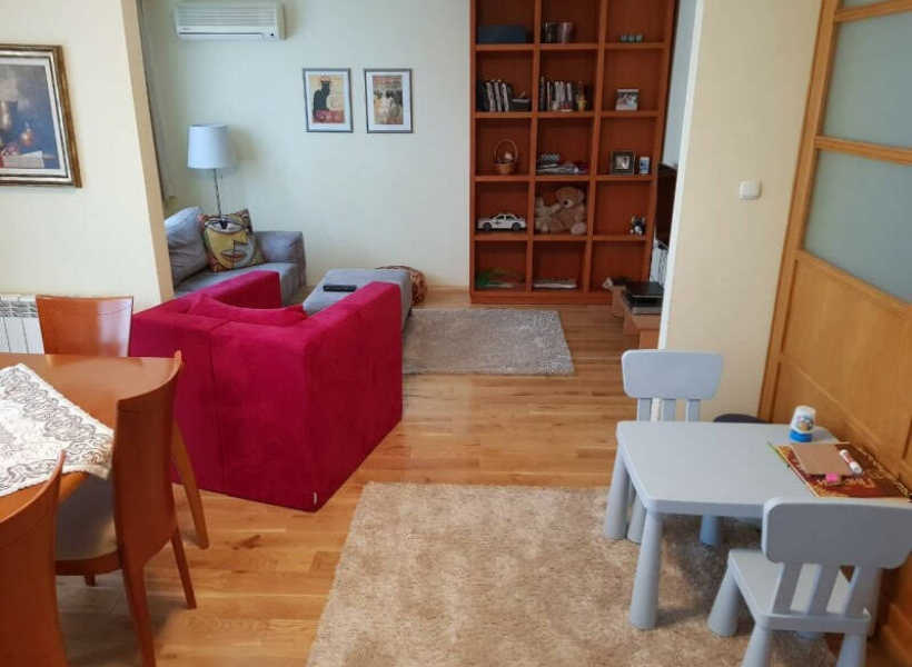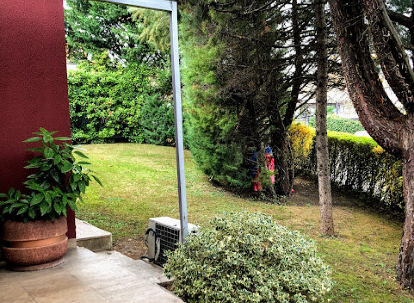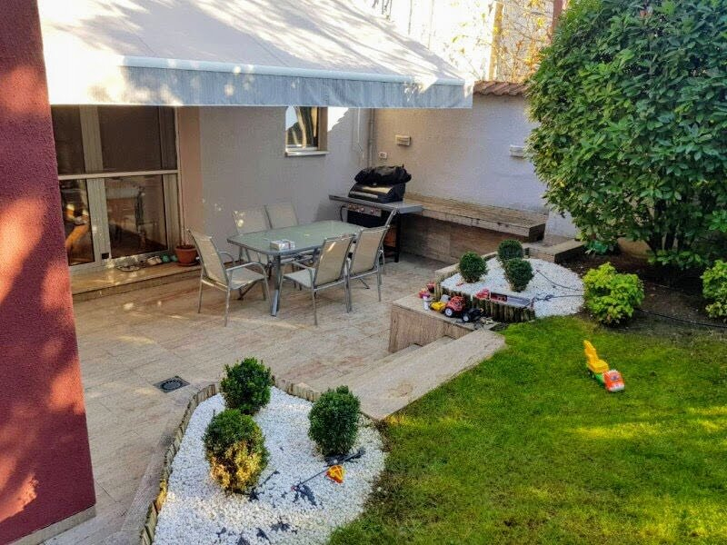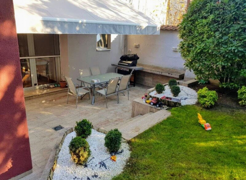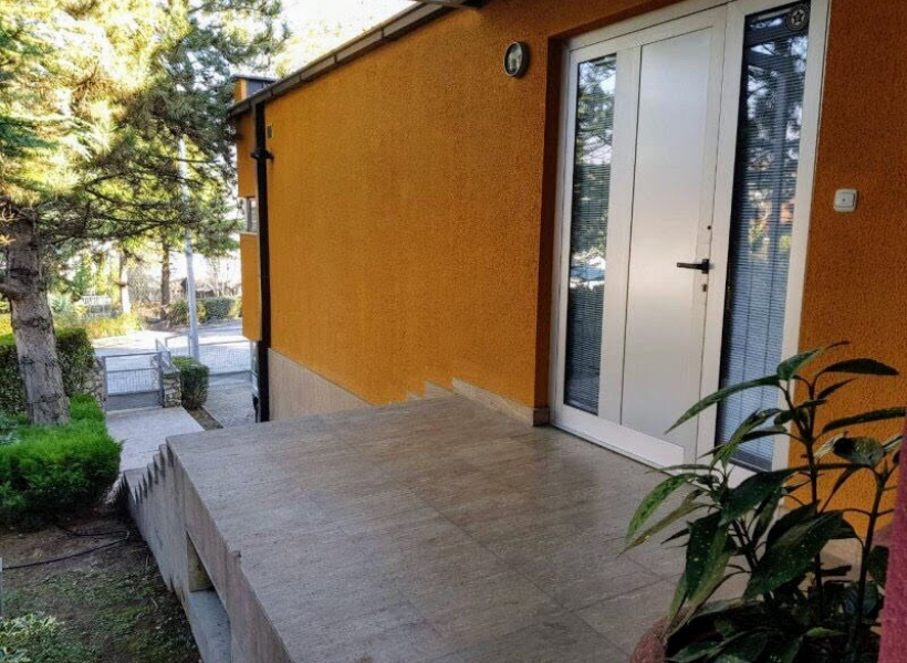 Поседува двор од 683м2 кој е практично уреден за деца и миленичиња.