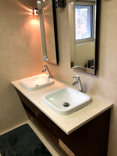 Куќата има вграден систем за чистење,топлотна пумпа за греење и клима уреди за ладење.