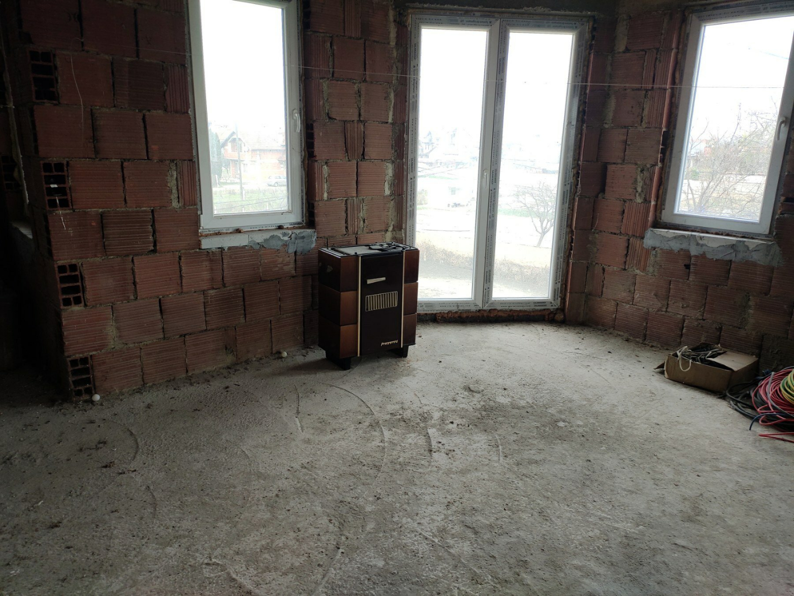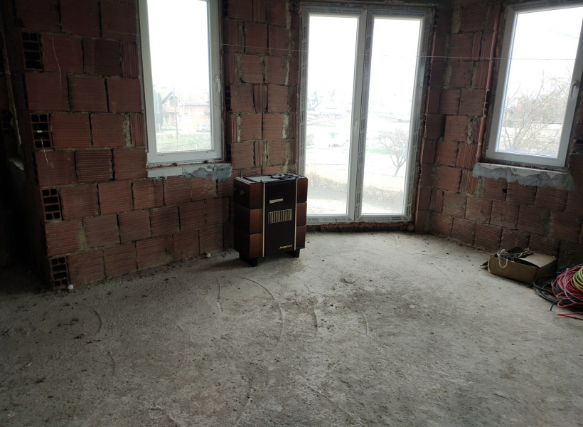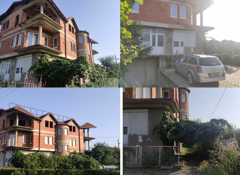 •             Приземје - надворешни ѕидови сендвич и термо фасада (два тоалети и комплетна инсталација за струја, вода и делумно решено греeње-подно и инвертер)