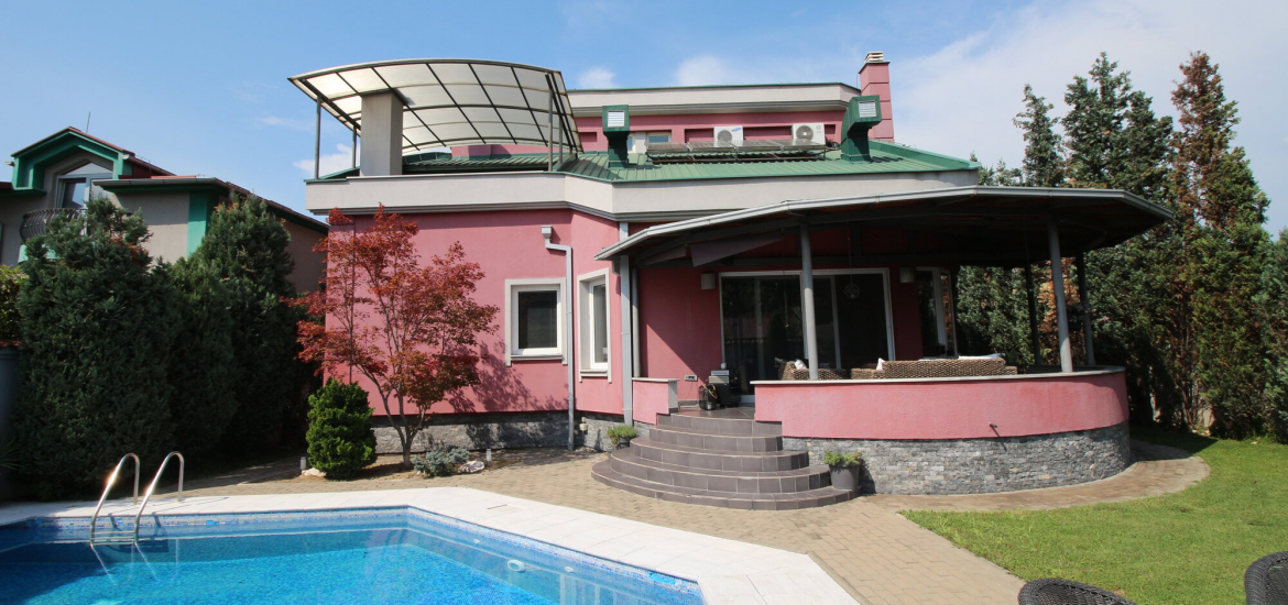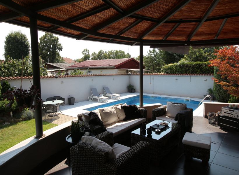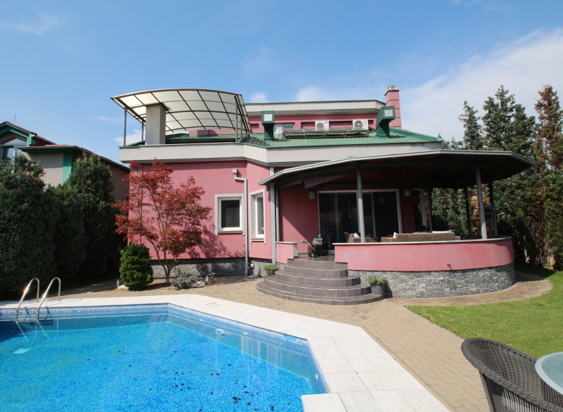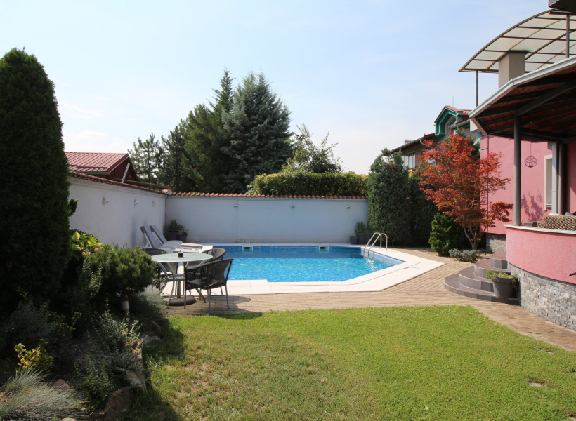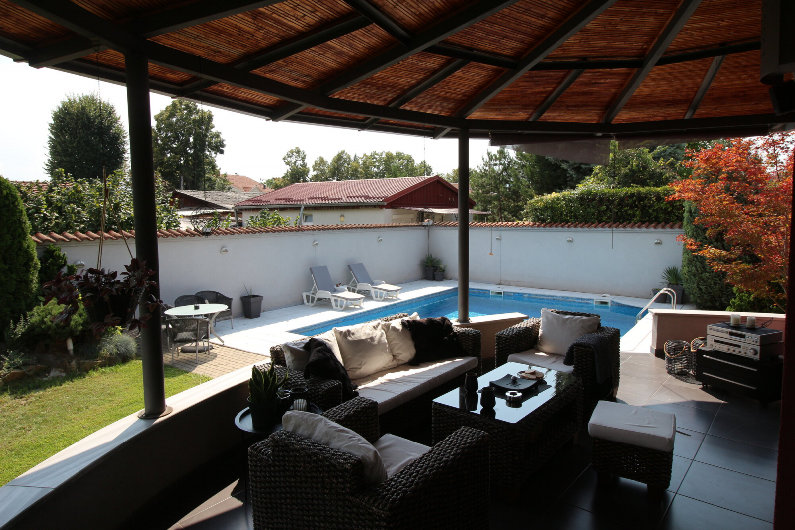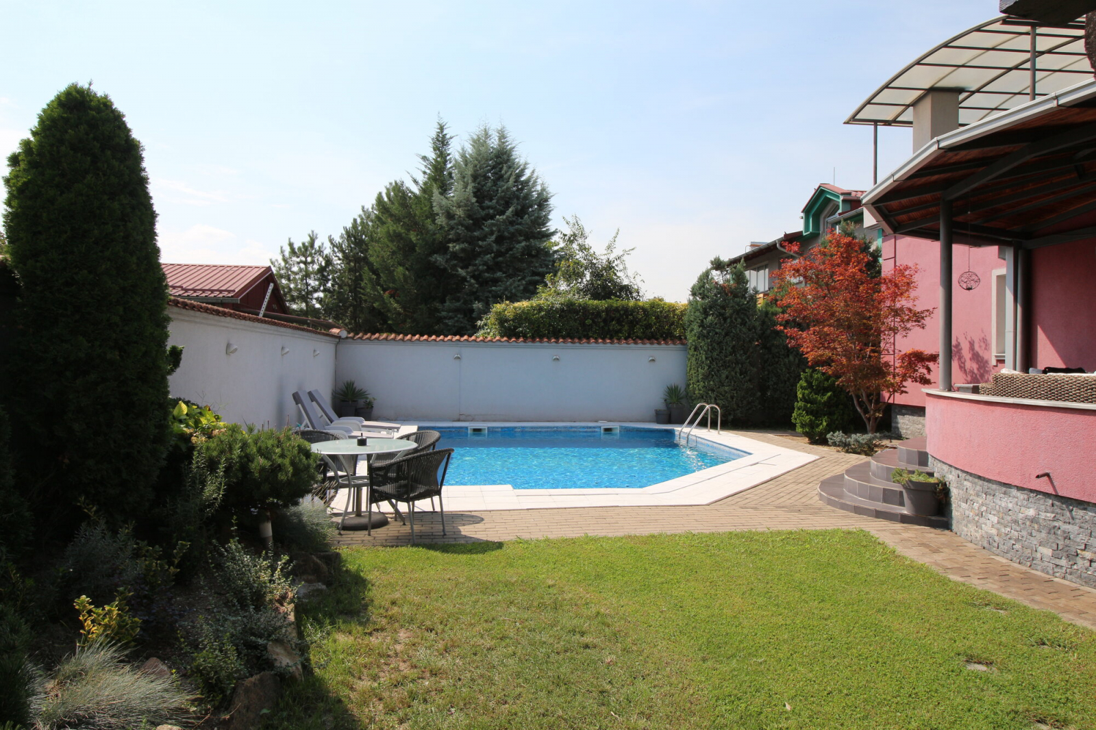 На располагање е дворно место од 450м2 со базен и помошни простории.