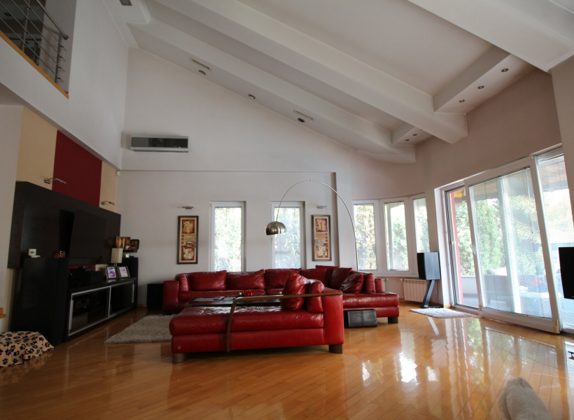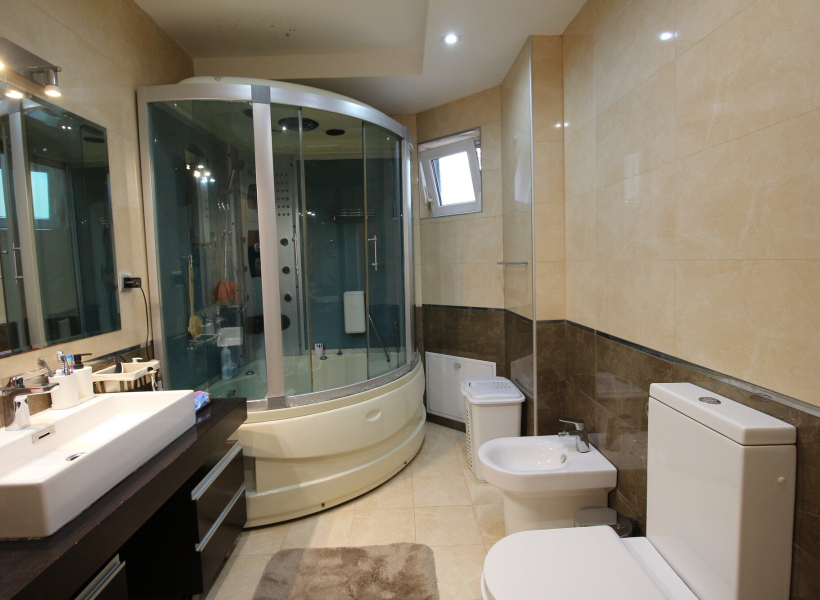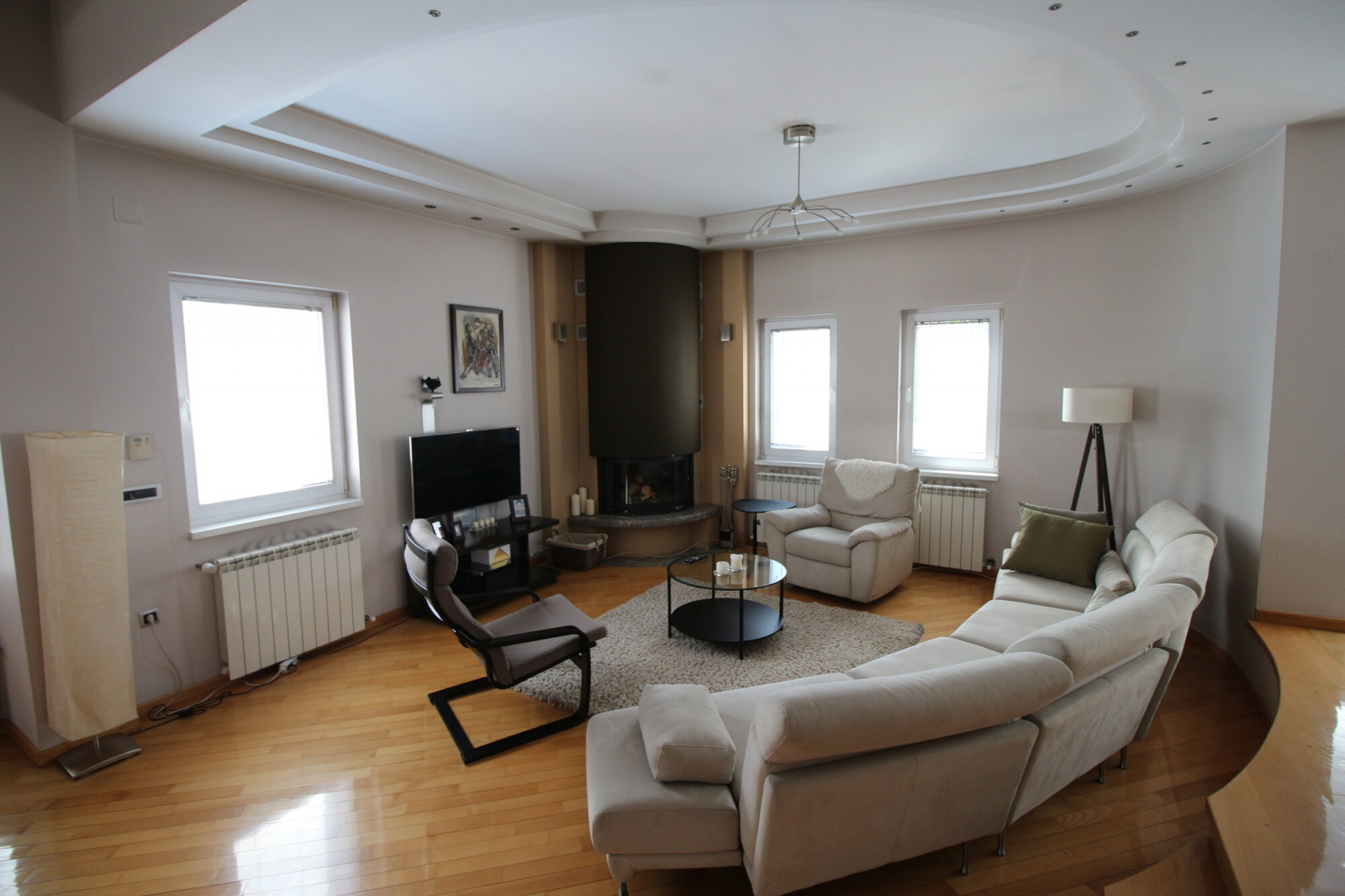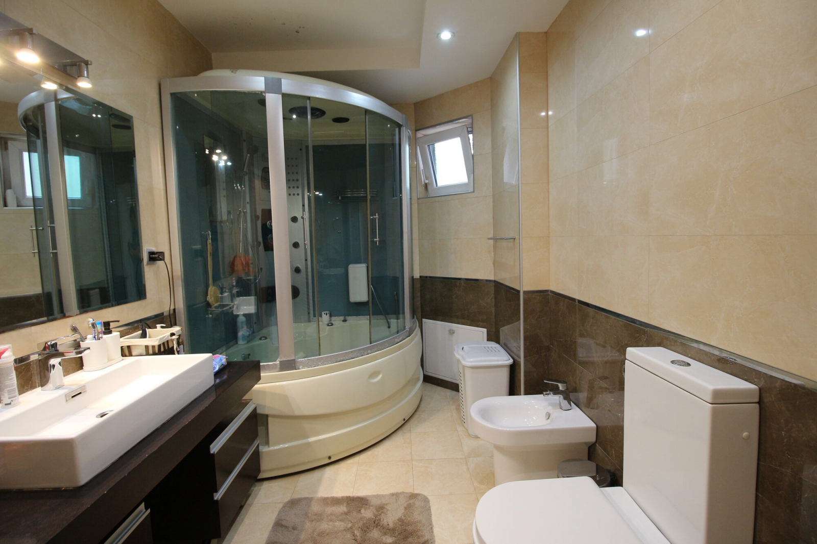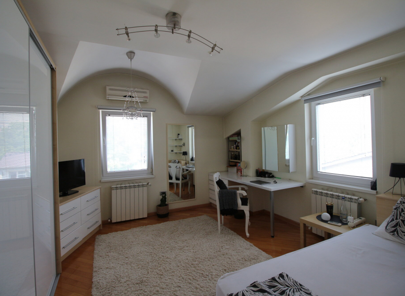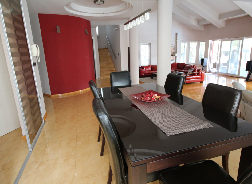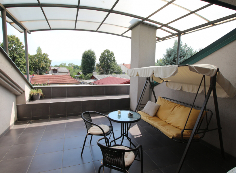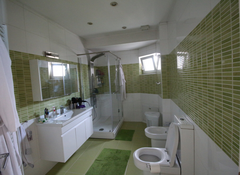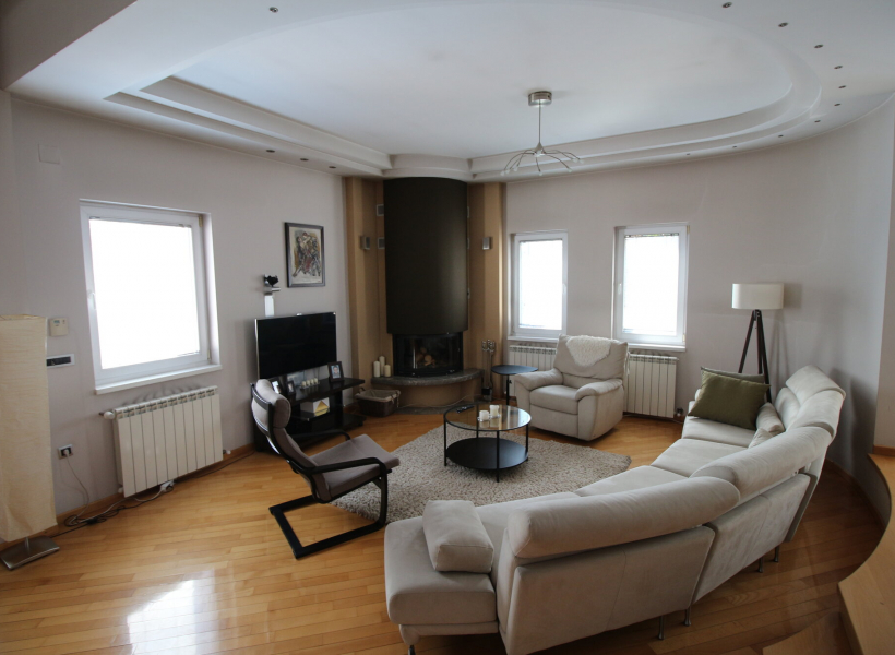 2. Приземје: со една спална соба со бања, кујна, трпезарија и отворен простор со камин, голема тераса со стакло и голем гостински тоалет.