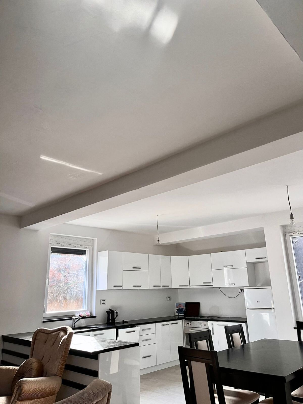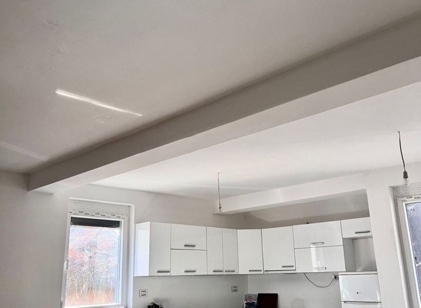 Куќата е опремена со Vaillant топлинска пумпа и подно греење за максимална удобност, како и камин на дрва во дневната просторија која создава пријатна и топла атмосфера.
