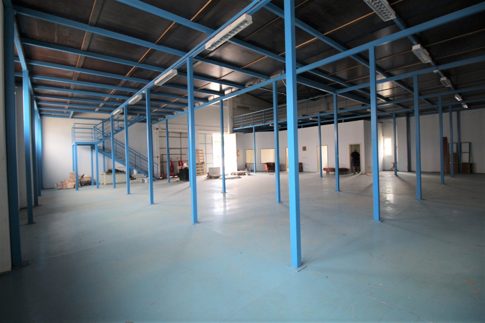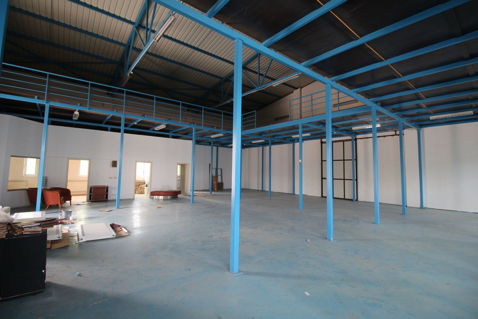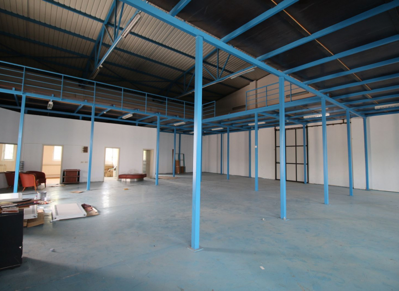 Магацинот е лоциран позади деловниот простор и е со големина од вкупно 613м2 ( 348м2 основа + 265м2 галерија) поседува една канцеларија, тоалет и кујна.