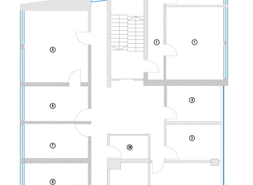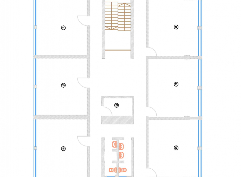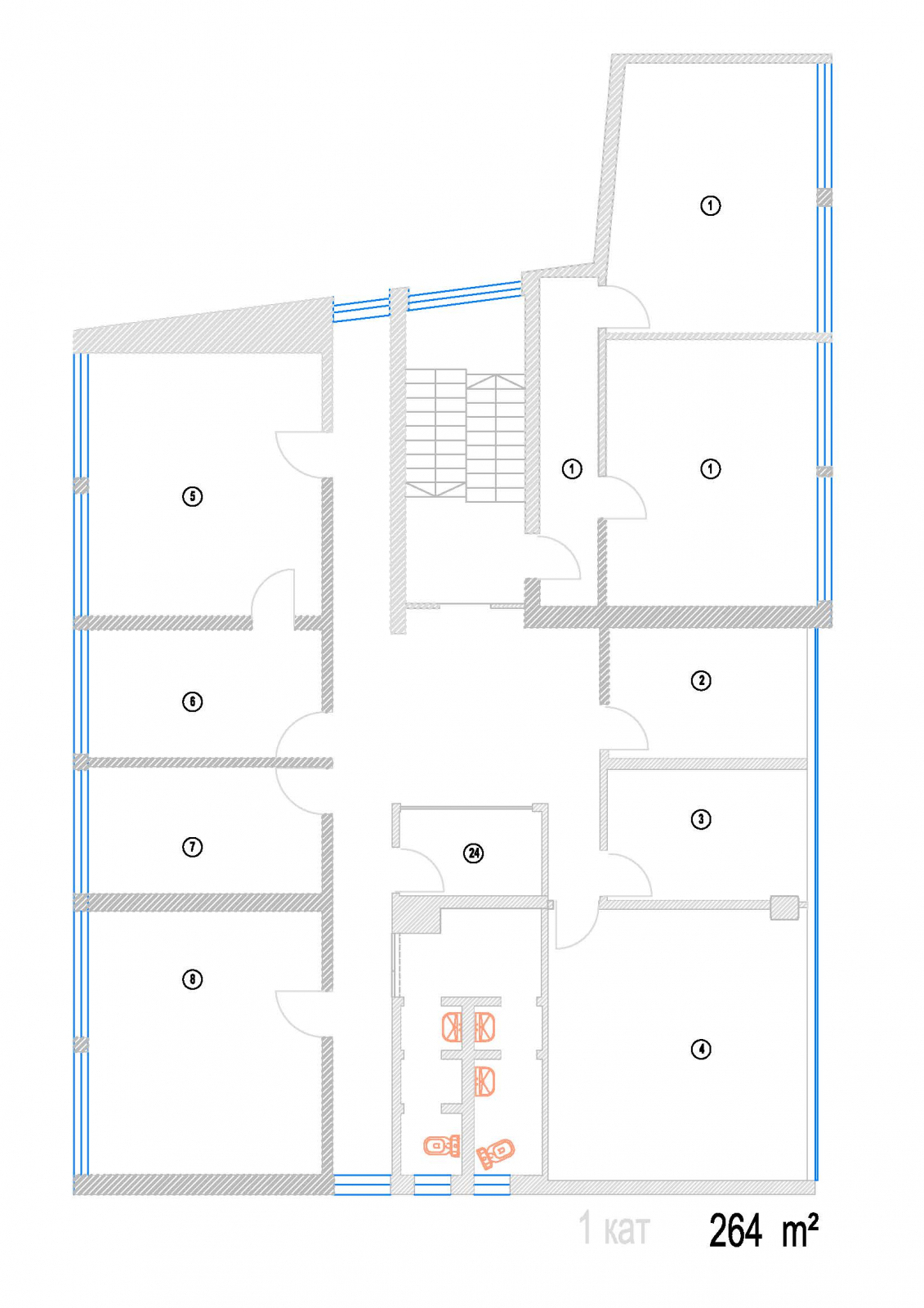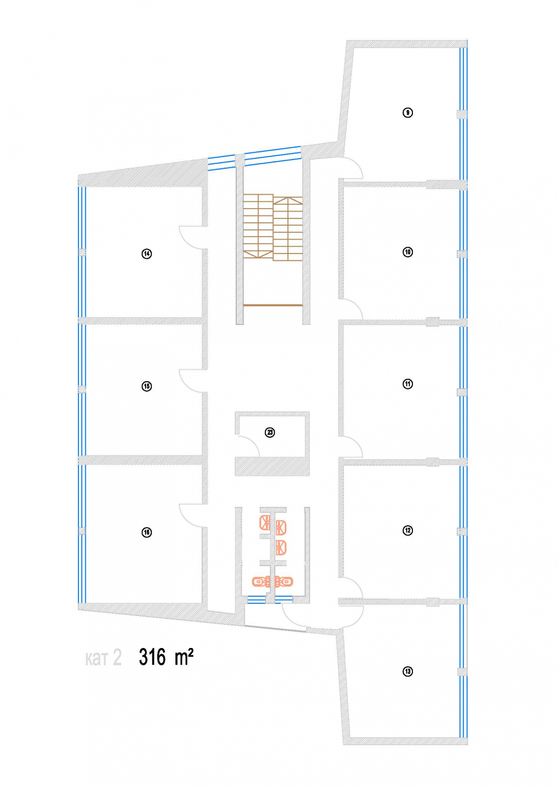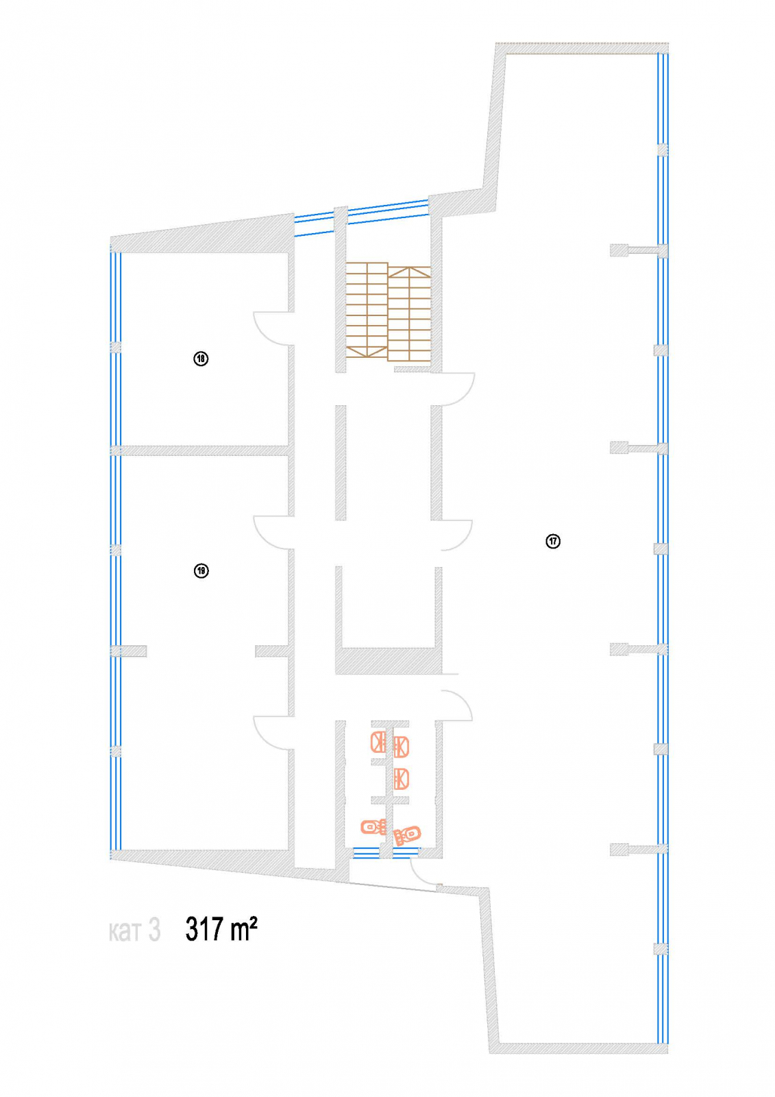 Просторот може да се изнајми цел со квадратура од 897м2 или посебно со квадратури од: