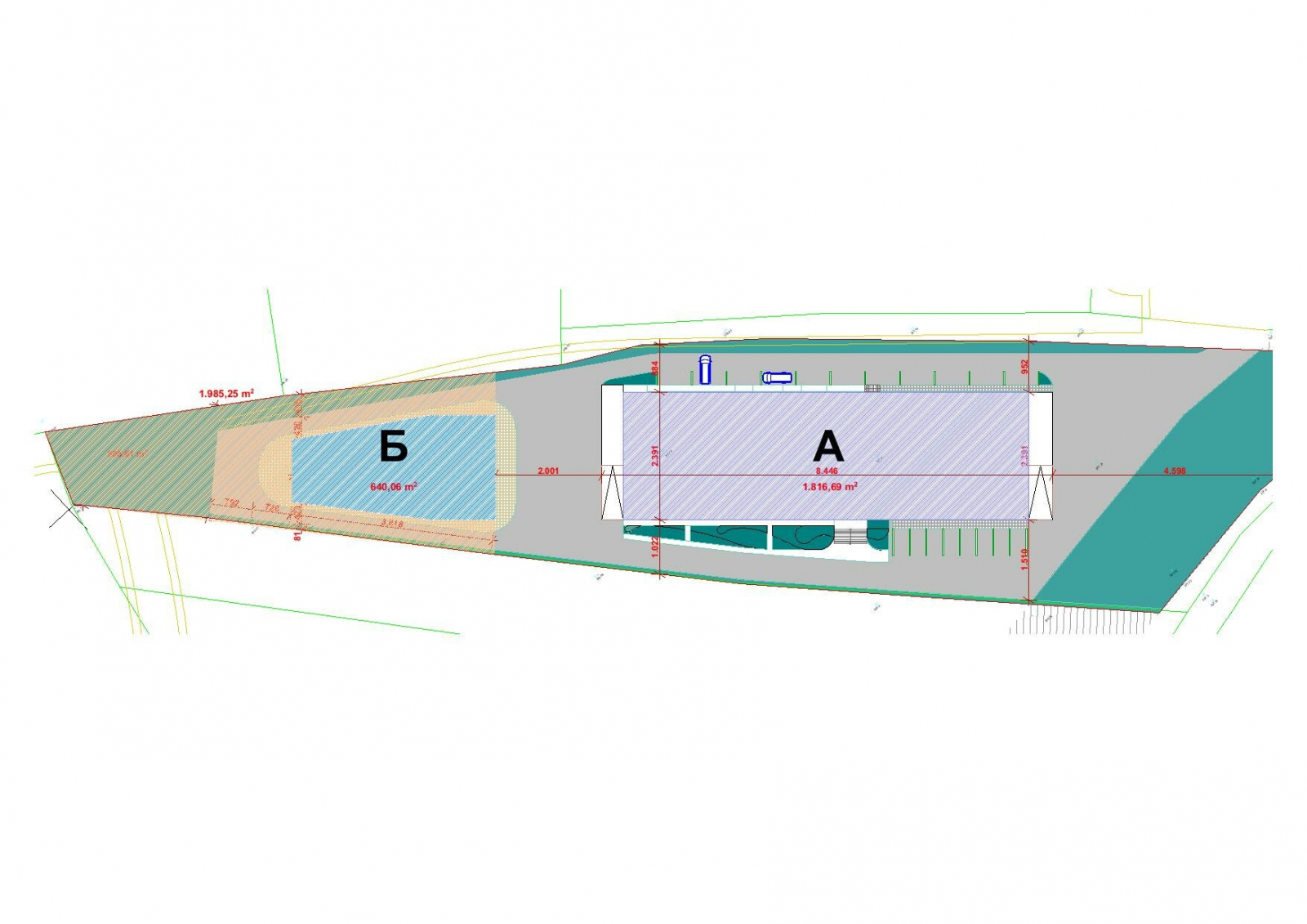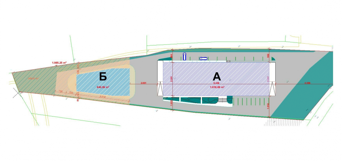 На плацот има можност да се изградат два индустриски објекта и тоа канцелариски простор од 640м2 и магацински простор од 2000м2.
