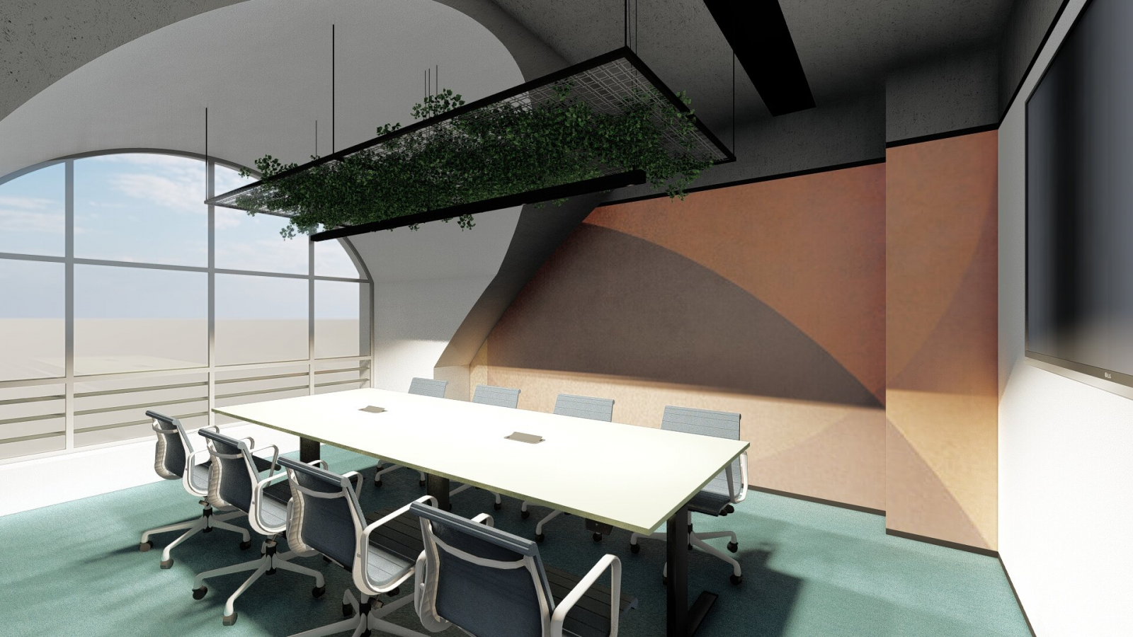 HTEC’s office provides a variety of flexible meeting spaces. One of several private conference rooms contains comfortable furniture for casual feeling of being in a living room.