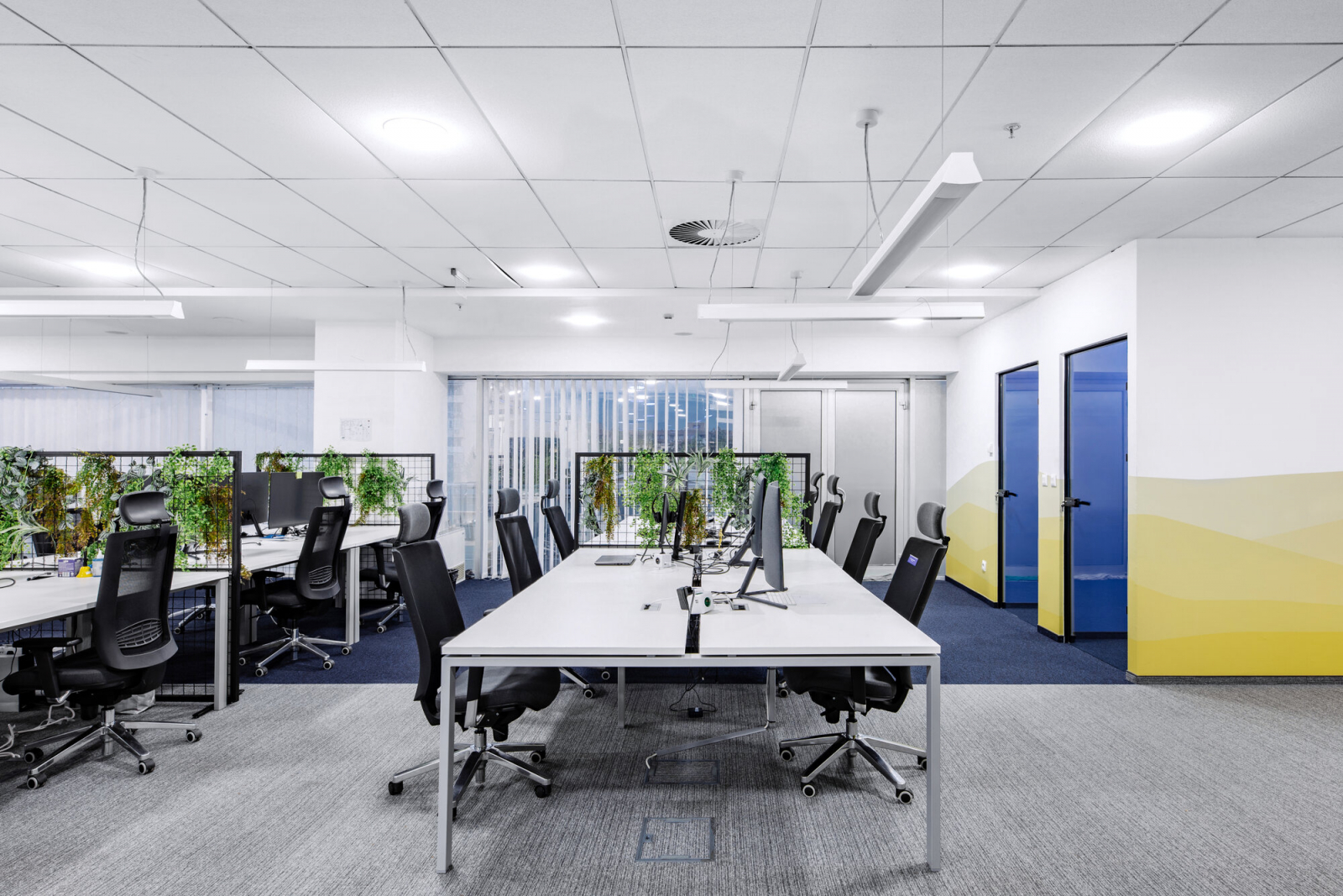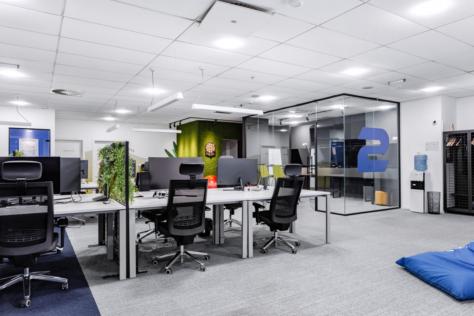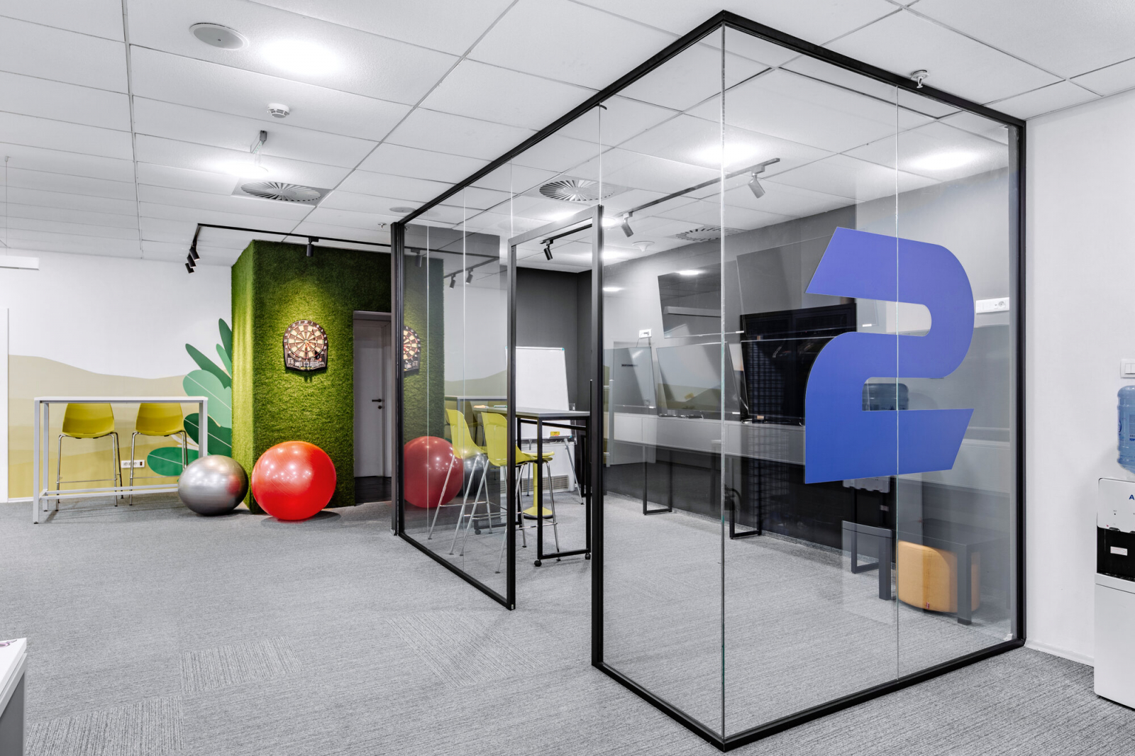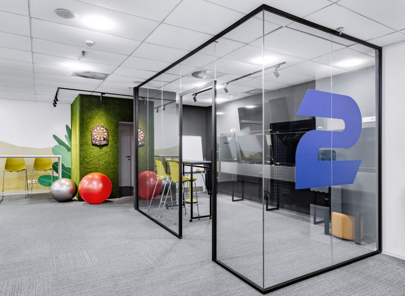 2Coders workplace includes immersive showroom right at the entrance for presentation of the company services, open space workmodes, kitchen, relax zone and game room, designed through visible branding to support a diversity of operational and development functions, as well as collaboration among its employees. The biophilic design is incorporated throughout the whole project.