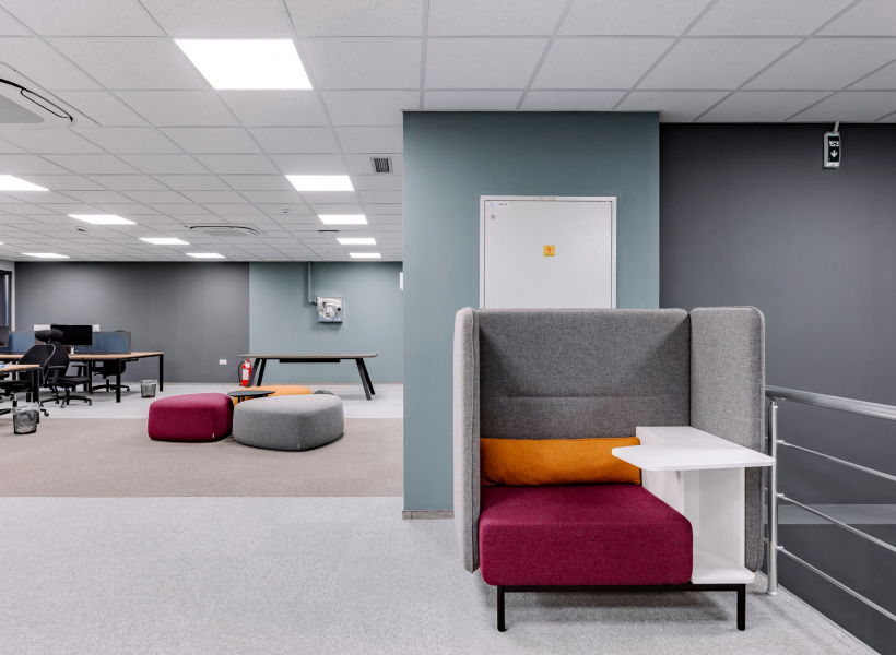 Property One and Parallel Group teams conducted a thorough workplace strategy and programming effort and determined that an agile workplace model would best suit this organization. With Mak System company situated on four floors, Parallel Group’s design team conceived each floor as a series of neighborhoods zones that serve as a home base for specific service lines and operating support groups. These neighborhoods allow employees to access a variety of spaces within a short distance, such as workstations, offices, phone booths, huddle rooms, lounges and open collaboration seating. Employees now have a variety of options to perform day-to-day tasks that perform to their preferred styles of work with greater accessibility to frequently used areas, crucial factor to successful hybrid work models.