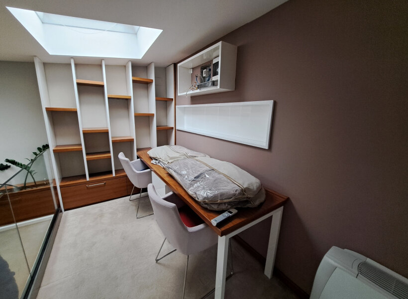 Греењето и ладењето во станот е регулирано преку топлотни пумпи.