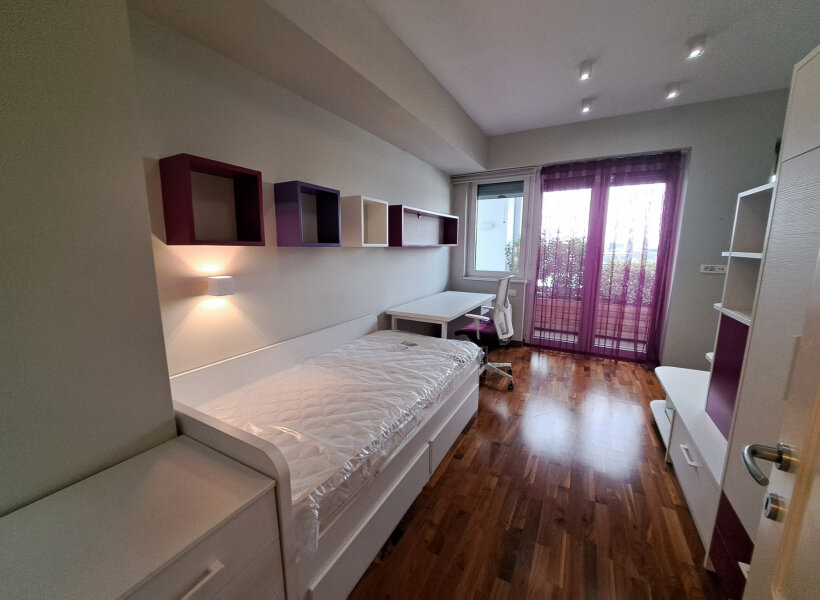 Станот располага со три спални соби, дневна соба со трпезарија, комплетно опремена кујна, три тоалети и пространа тераса.