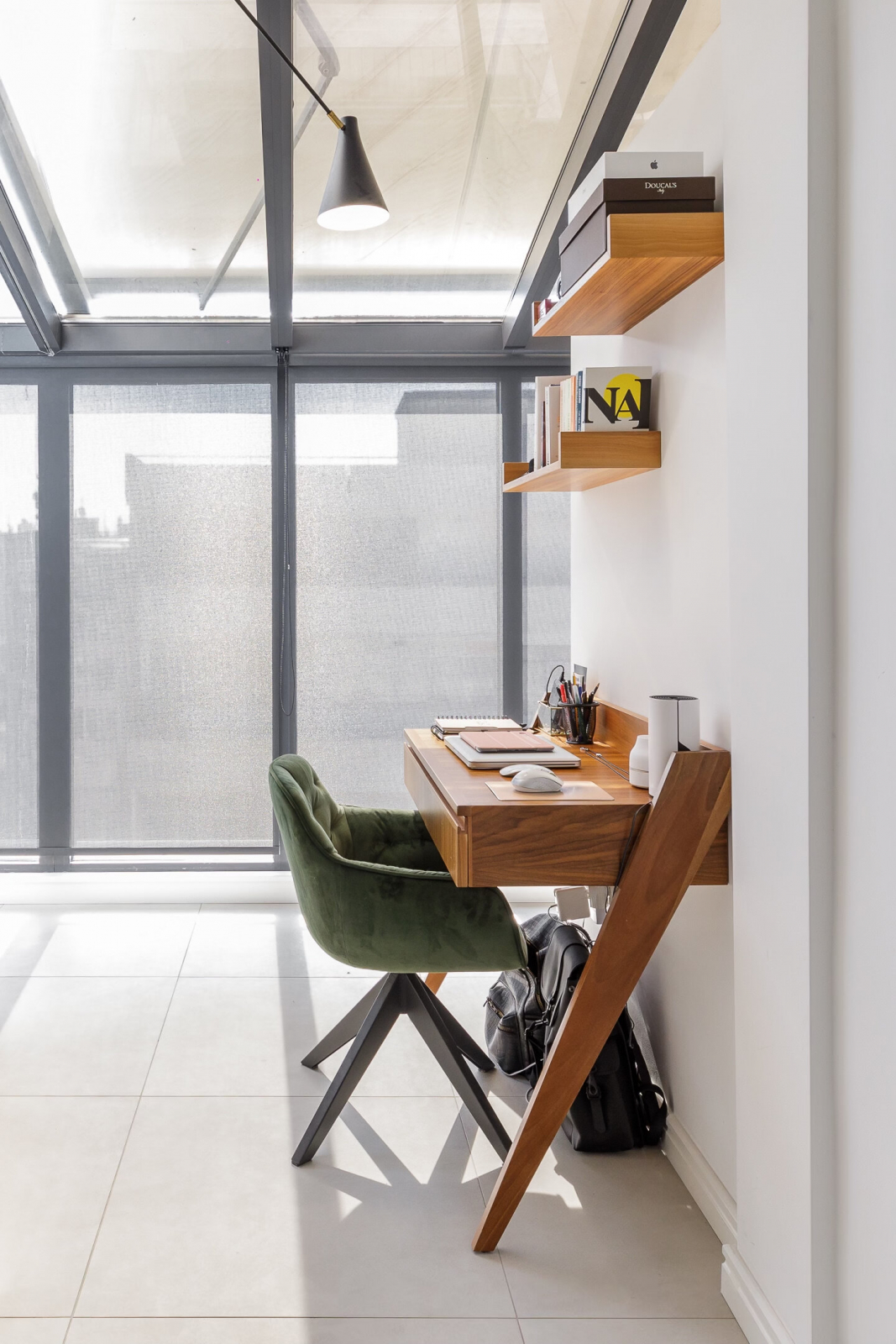 Распространет на две нивоа, овој уникатно уреден пентахус, располага со модерно уредена отворена кујна, прекрасна дневна соба со камин, три спални соби, два тоалети и пространа тераса.