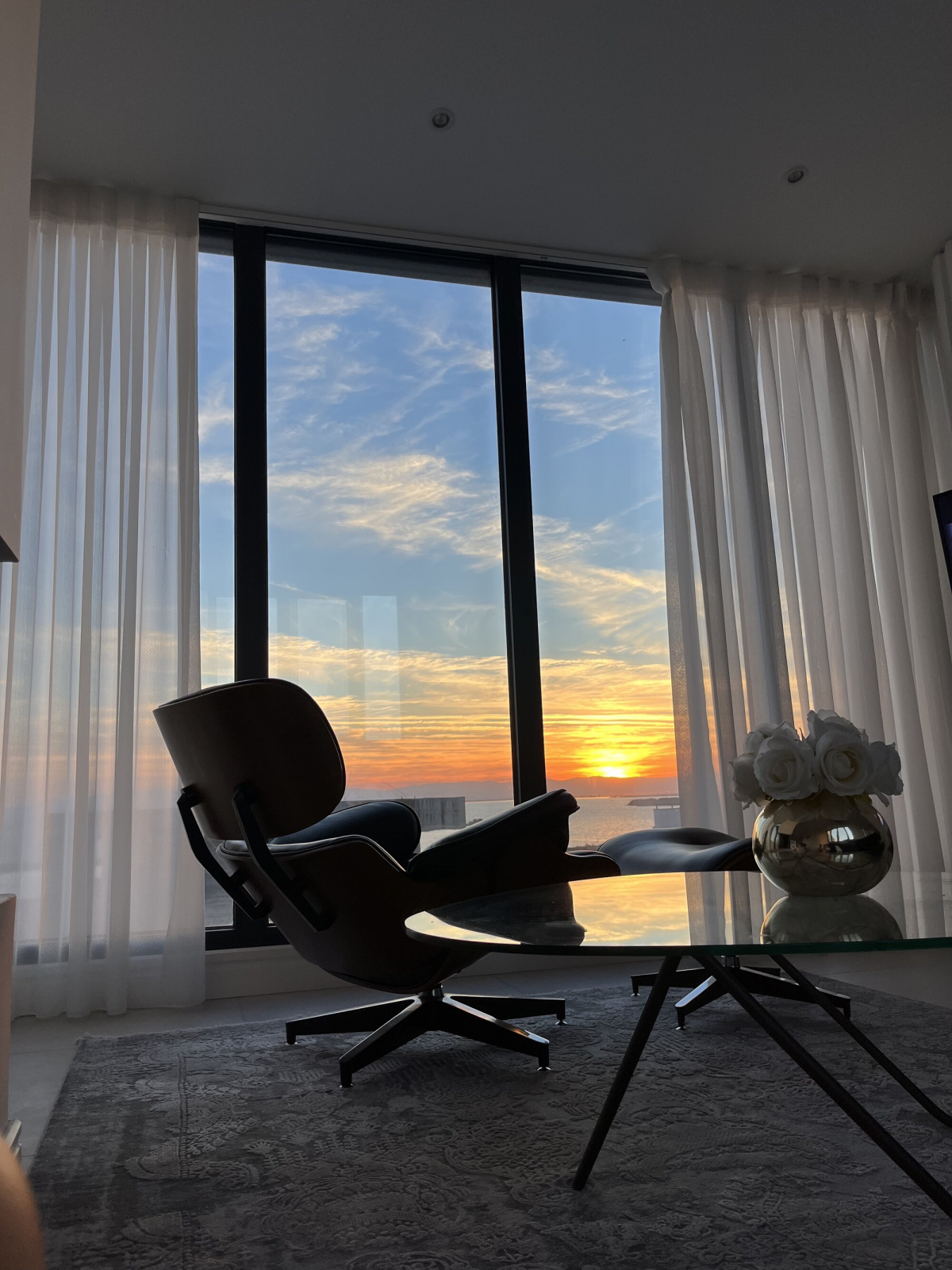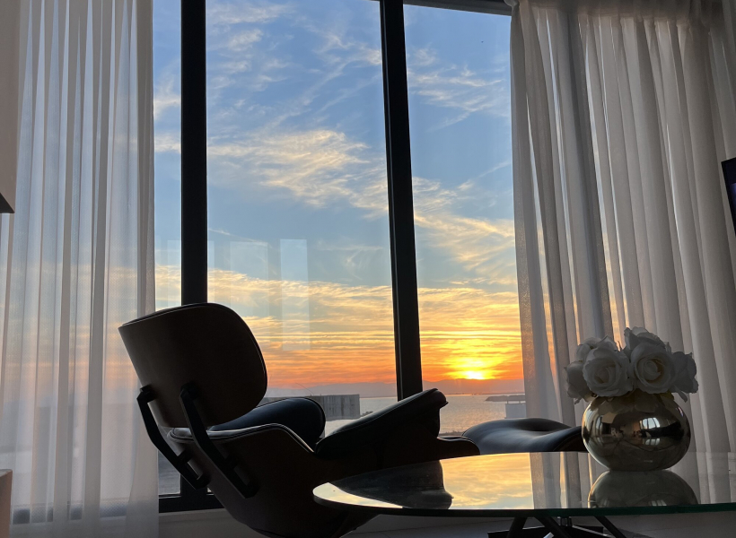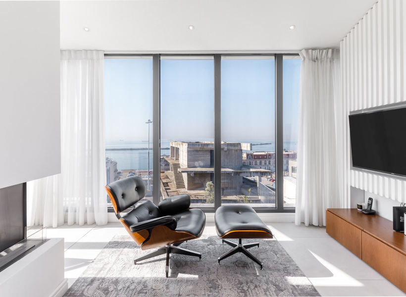 Станот е лоциран на 8ми кат, со што овозможува прекрасен, отворен поглед кон градот и пристаништето.