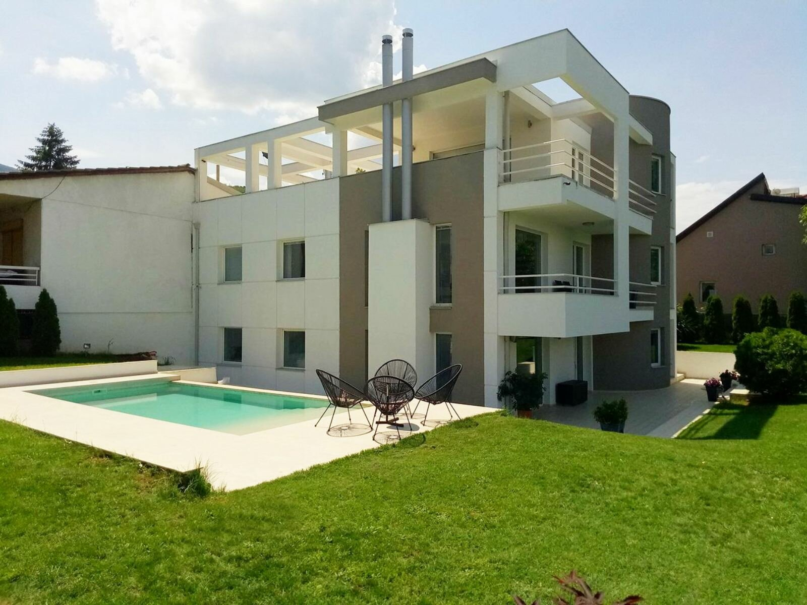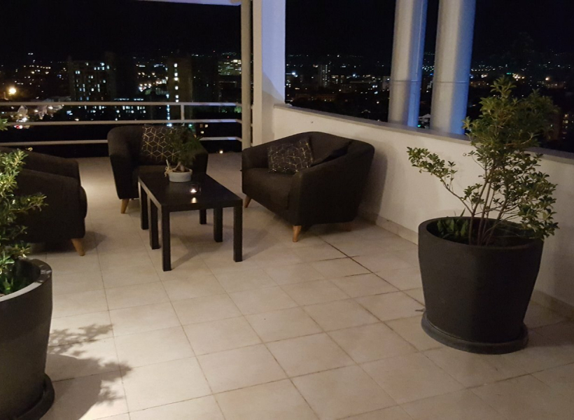 Спратот располага со вкупна површина од 160м2, како и кровна тераса од 110м2.