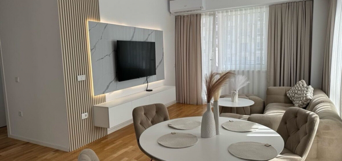 Се изнајмува нов, комплетно опремен стан во East Gate, со вкупна површина од 80м2.