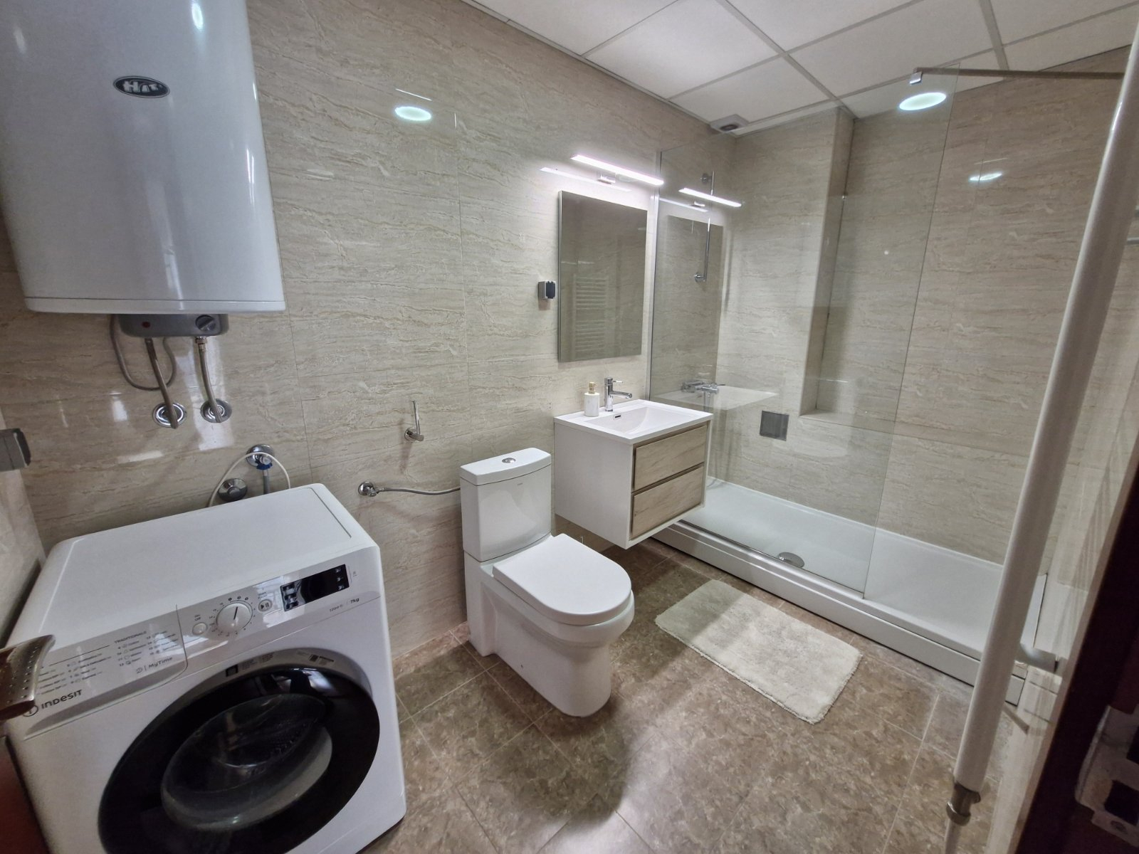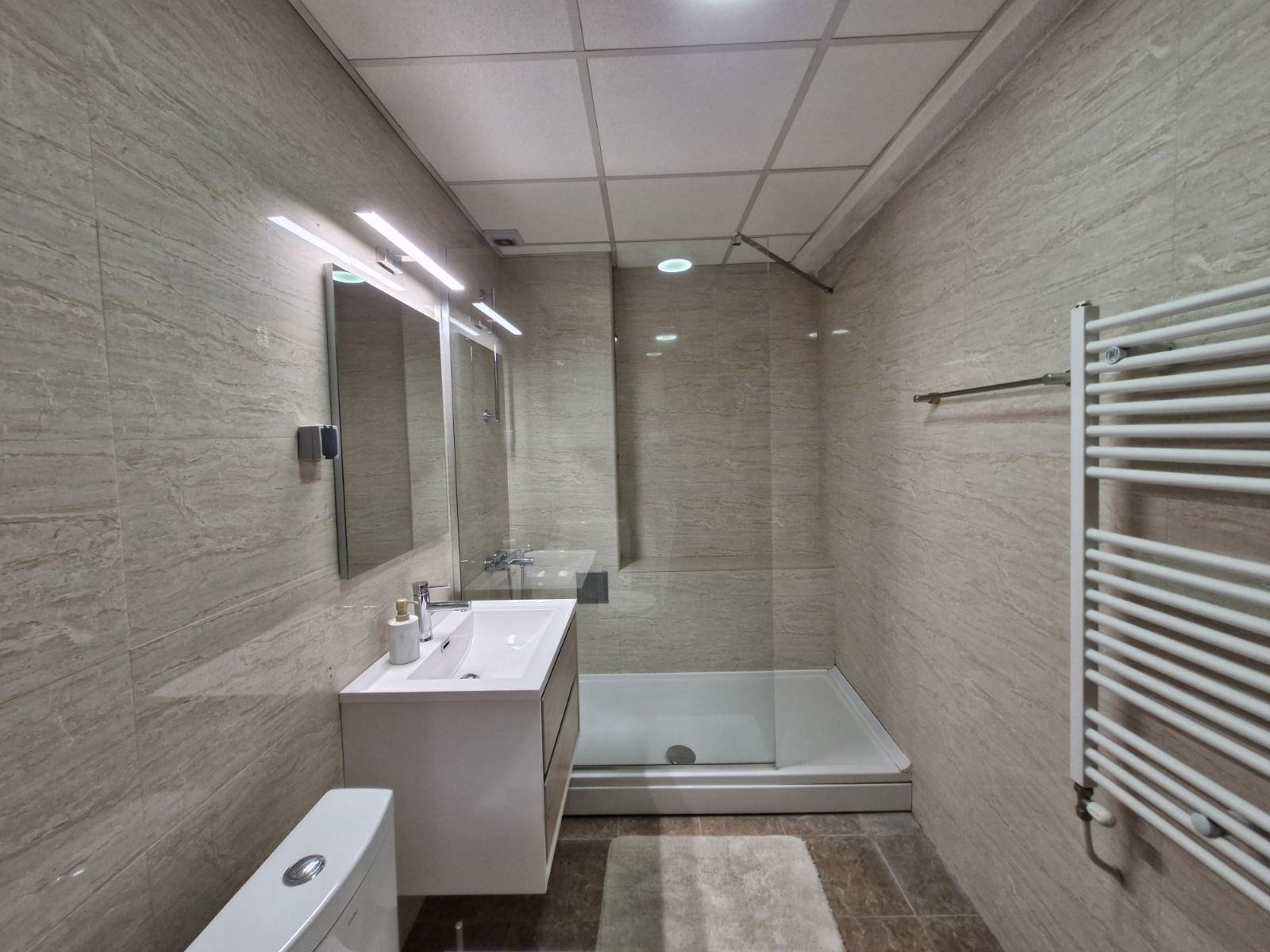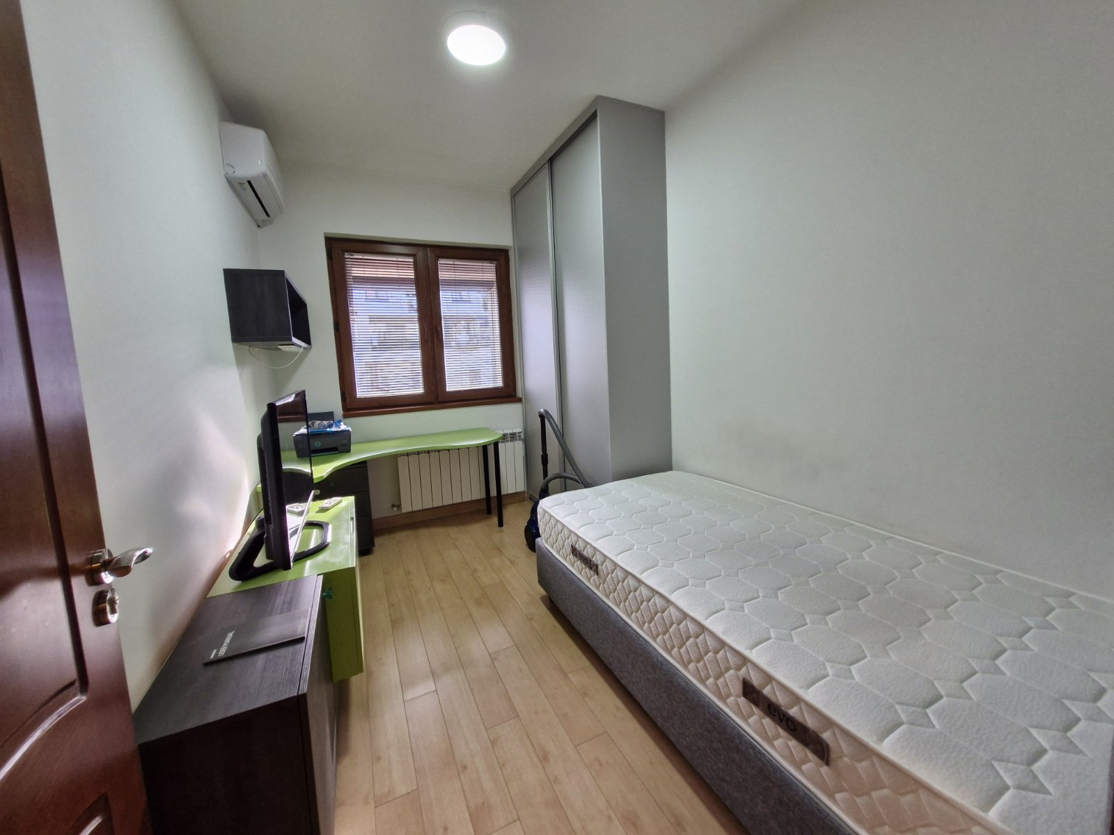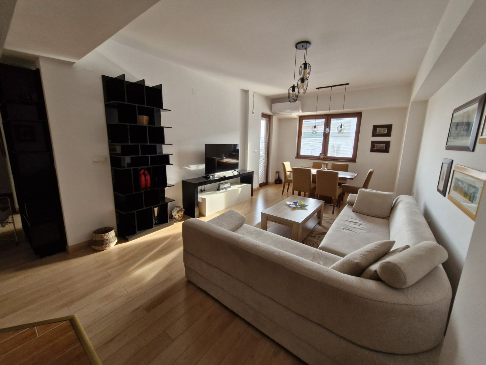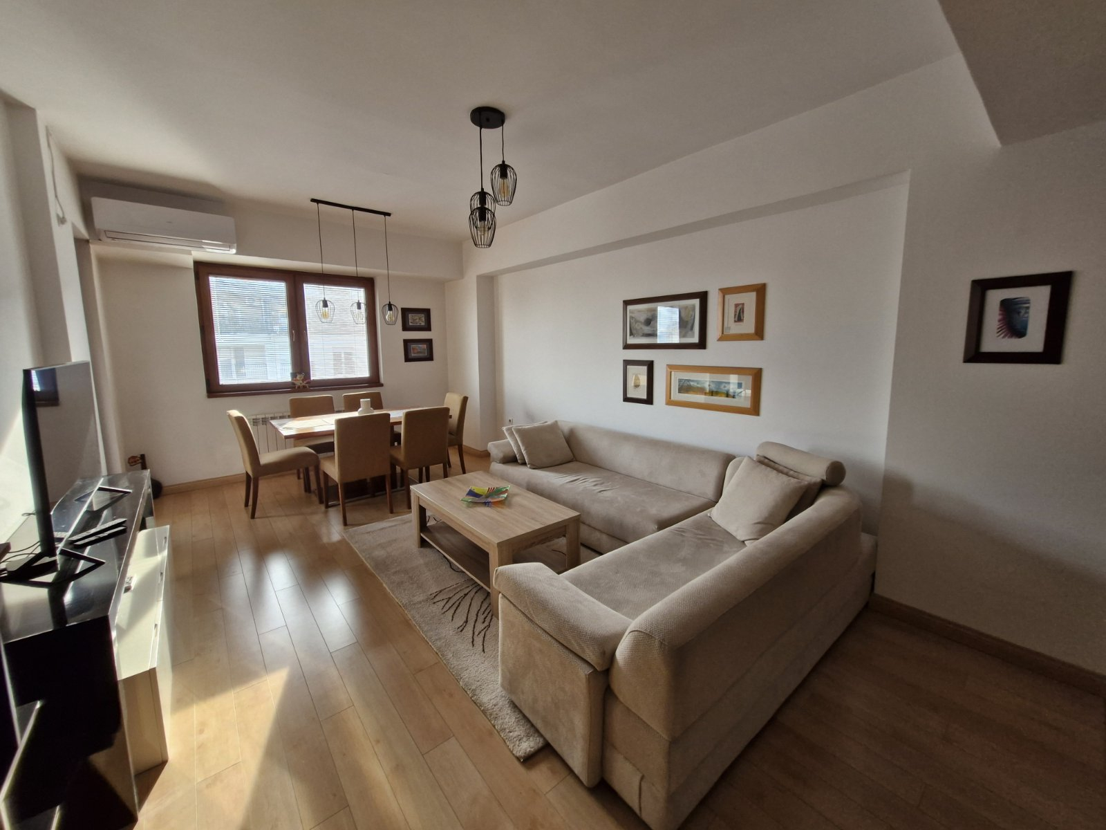 Греењето и ладењето во станот е регулирано преку централно градско парно и клима уреди.