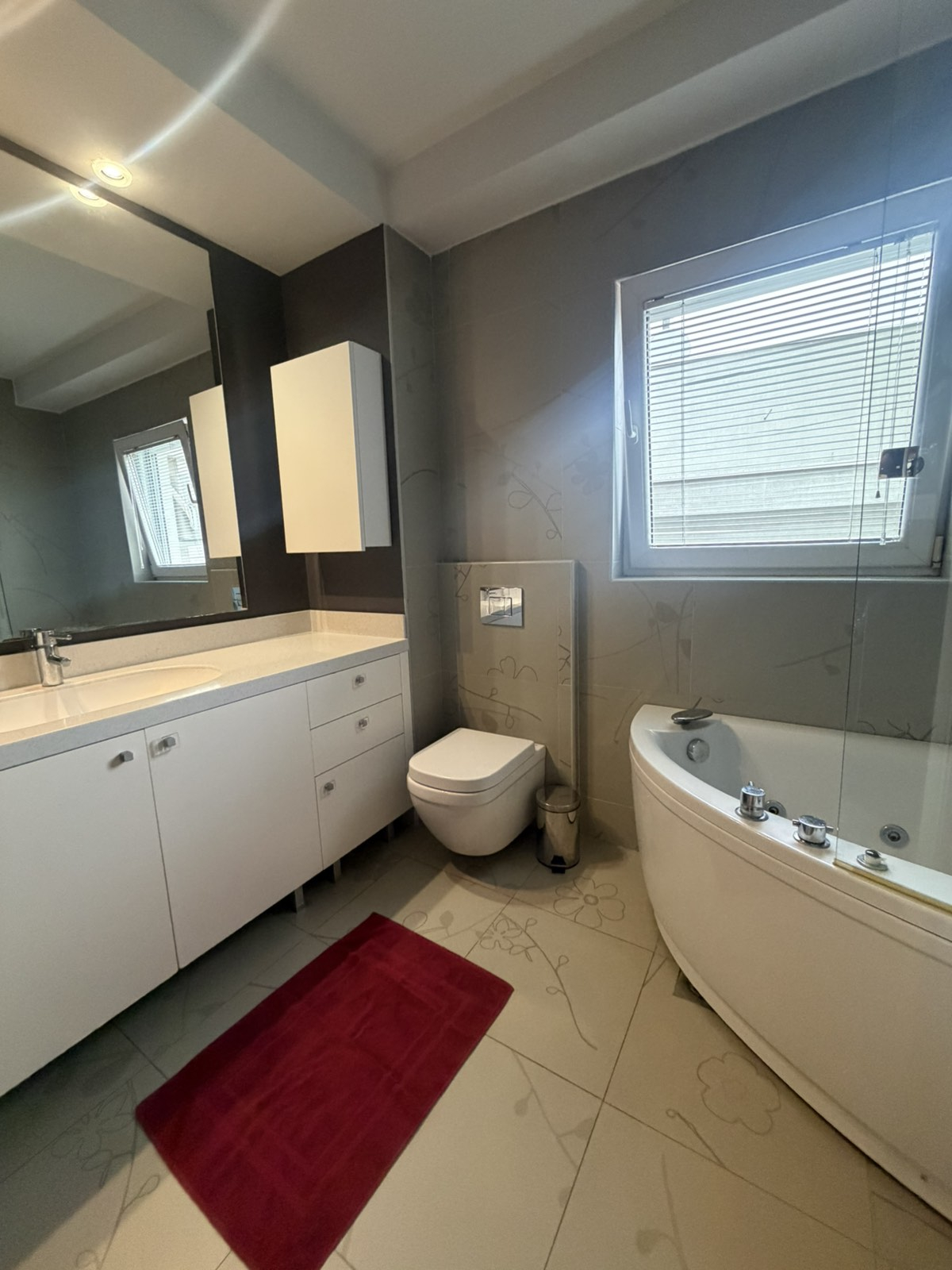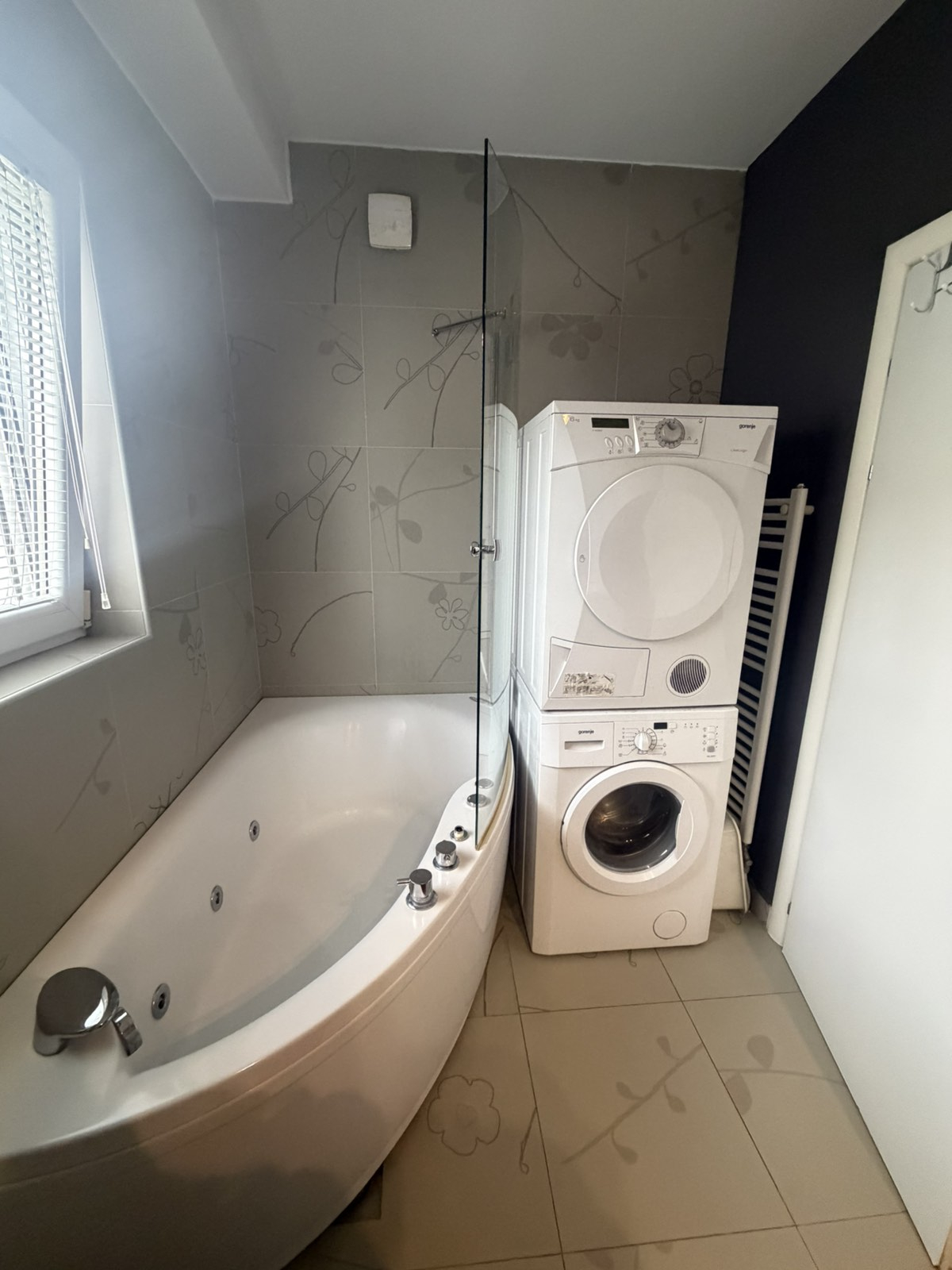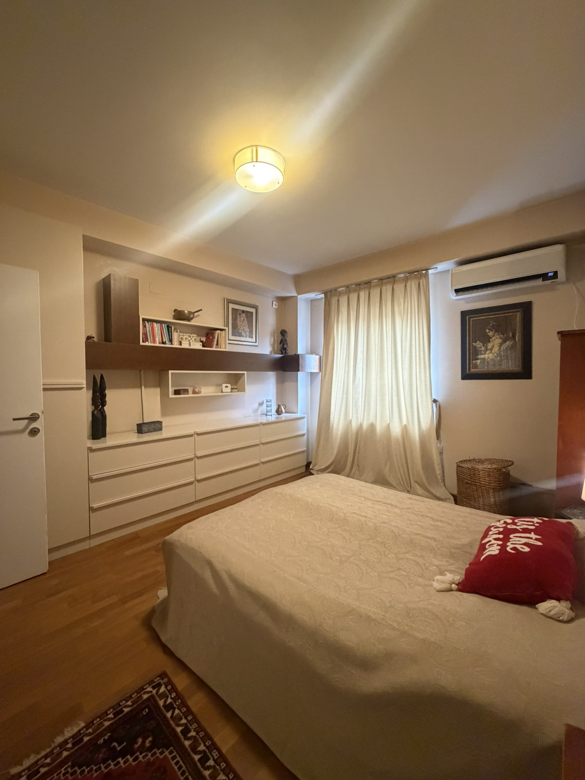 Греењето и ладењето се регулирани со сопствено парно на струја + приклучок кон градско парно и инвертер климиво секоја соба.
