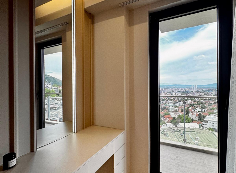 Се изнајмува нов, комплетно опремен стан во Panorama Residence, со вкупна површина од 67м2.