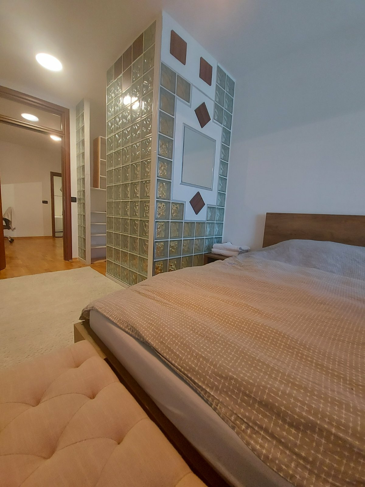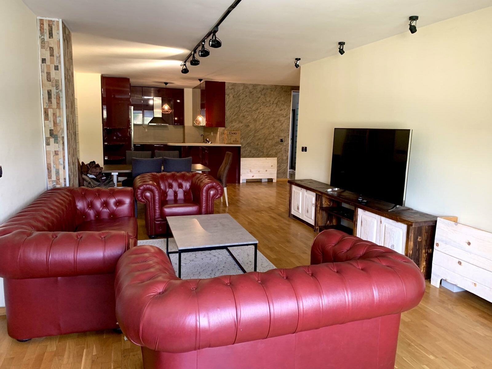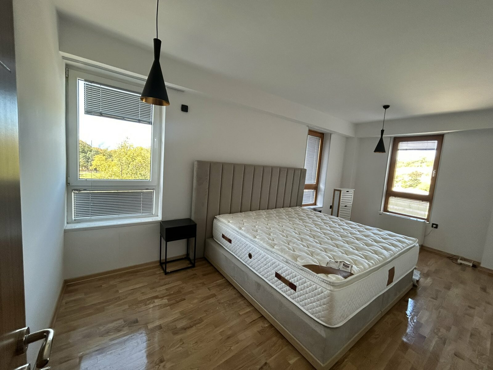 Се изнајмува комплетно опремен стан на одлична локација во близина на градски парк, со вкупна површина од 150м2, лоциран на трети кат.