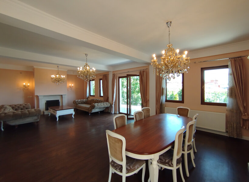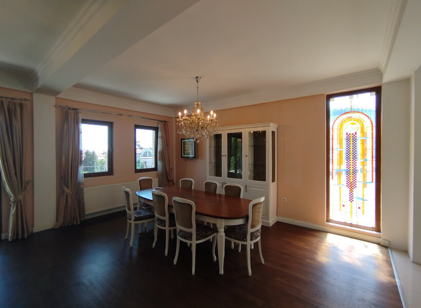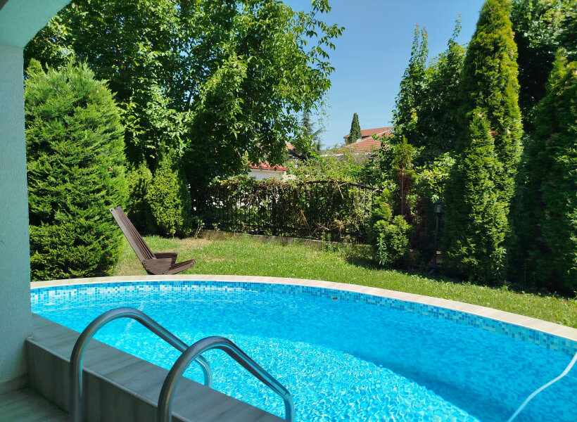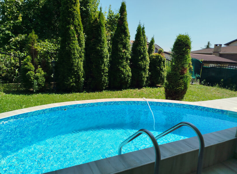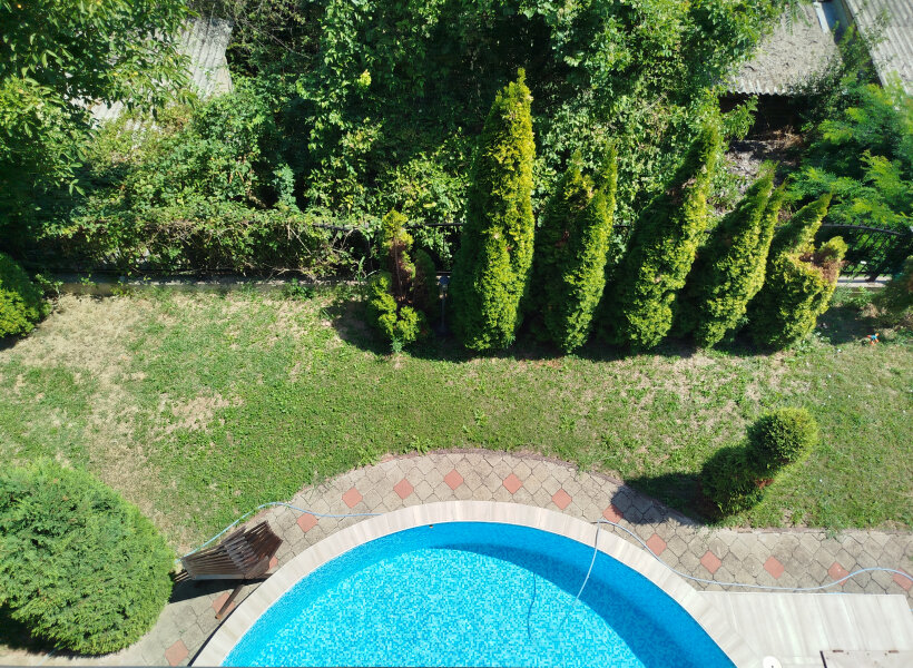 Куќата располага со 300м2 површина и 400м2 двор со базен.