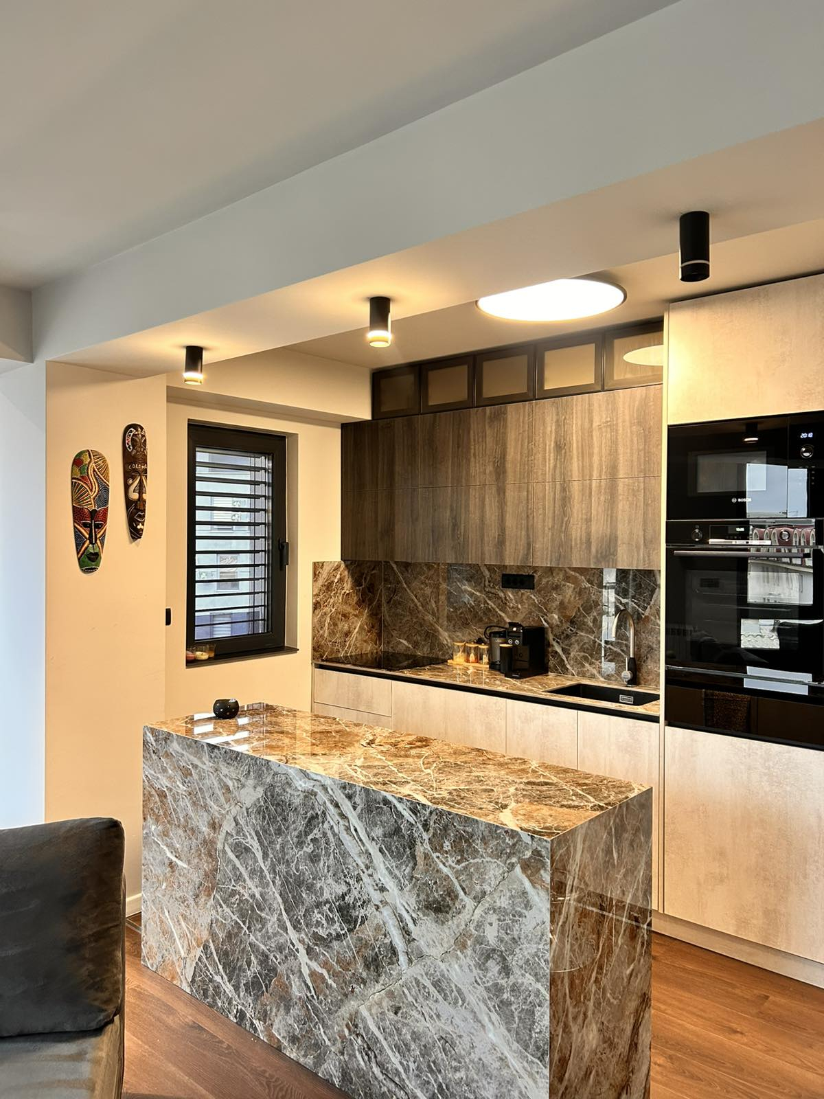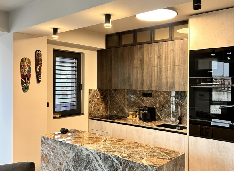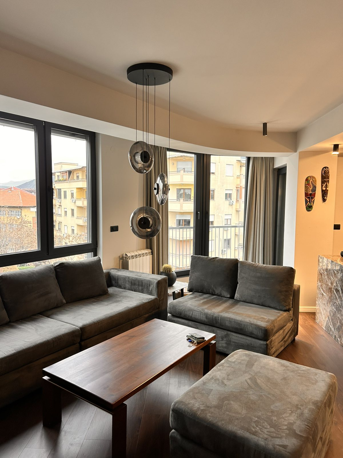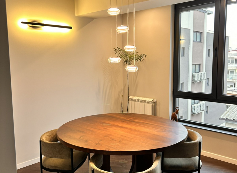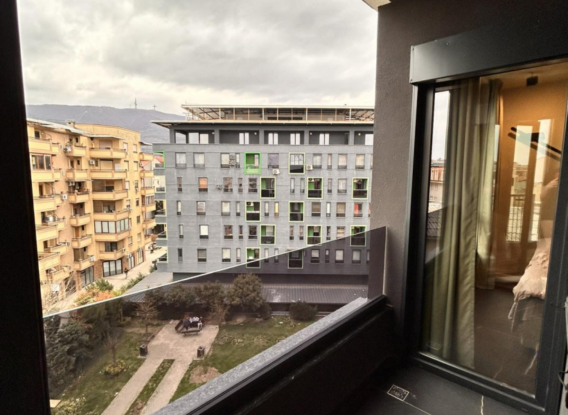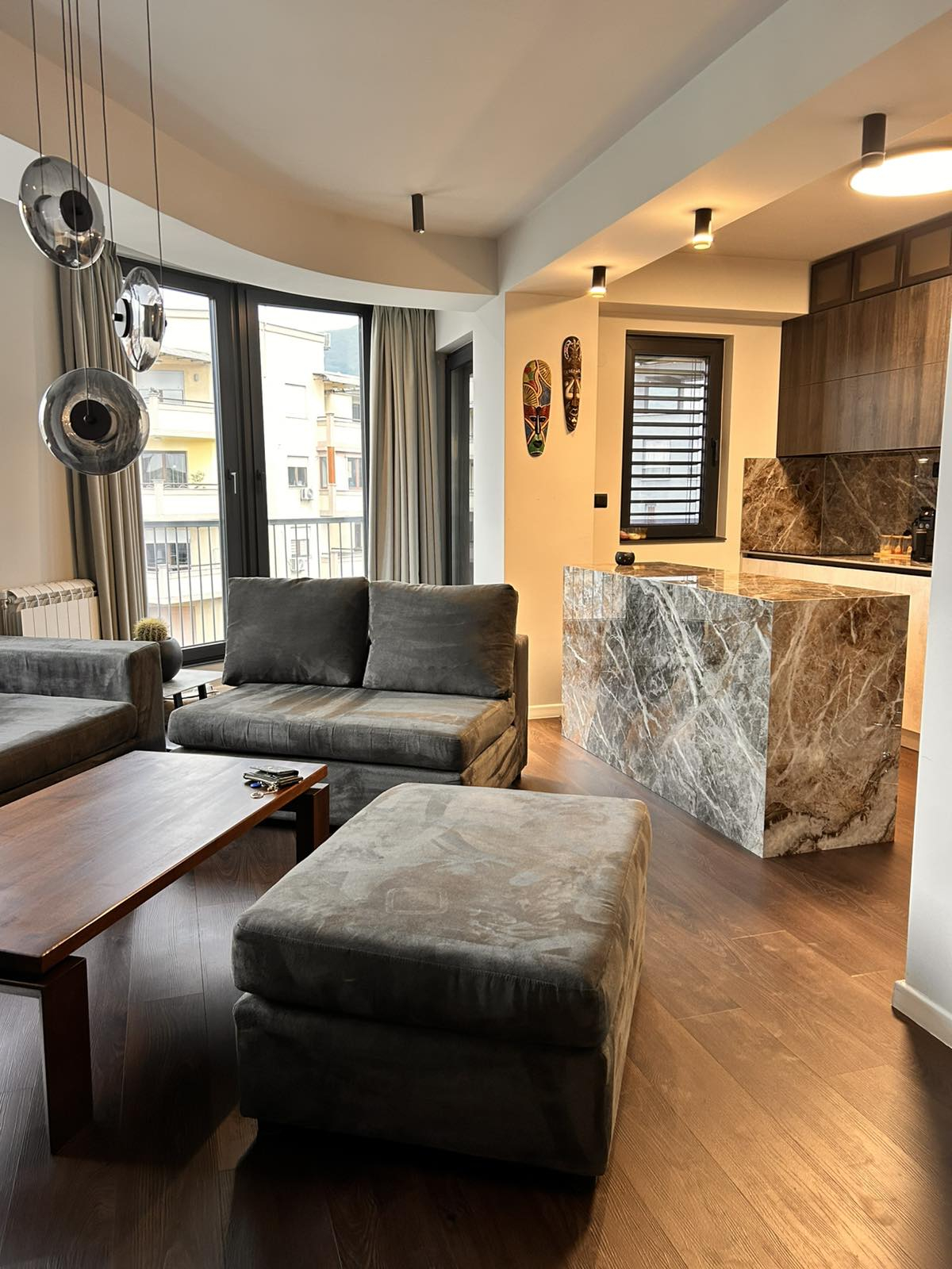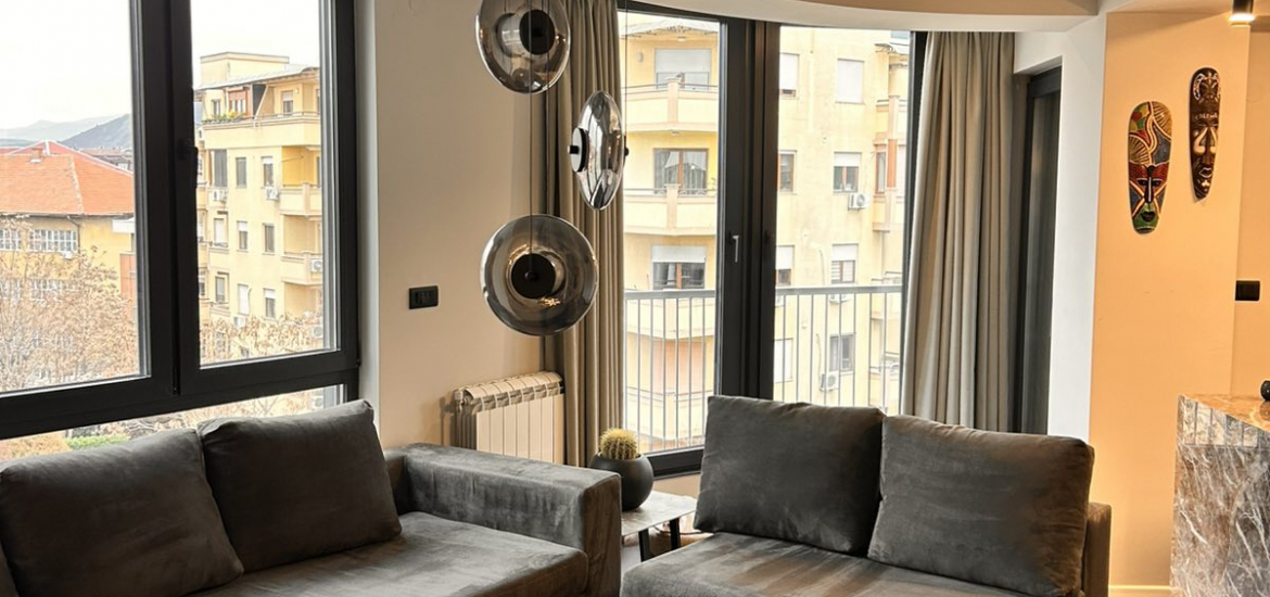 Лоциран е во срцето на Скопје, во мирна и атрактивна зона на Дебар Маало, блиску до кафулиња, ресторани и сите потребни содржини. Станот има едно затворено паркинг место и лифт со директен пристап до станот и терасата.