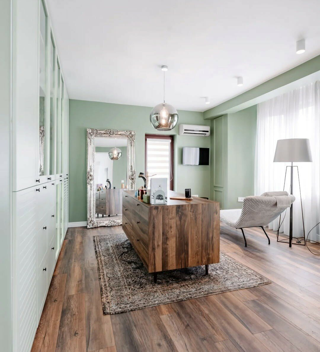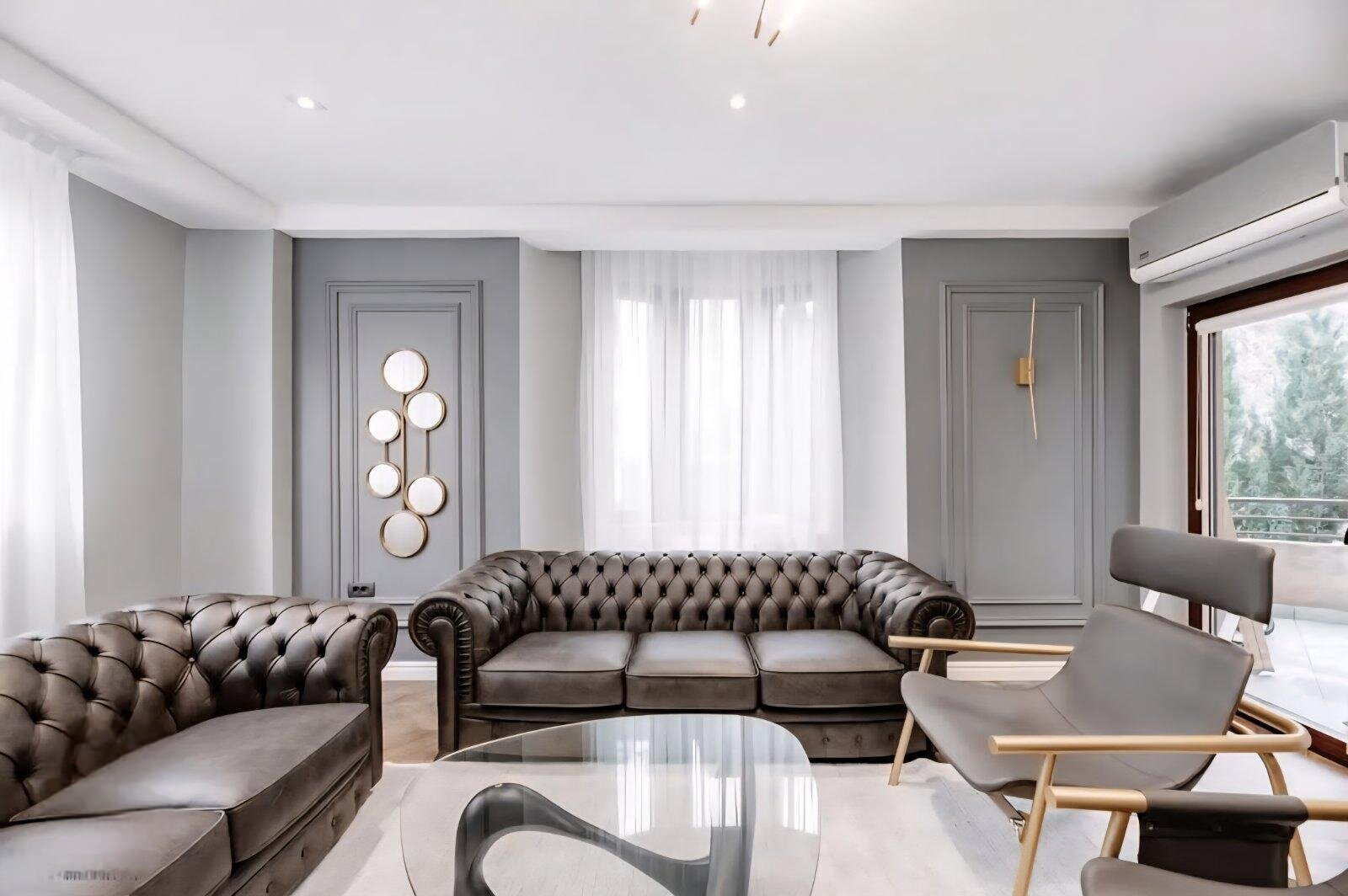 Греењето и ладењето е регулирано преку систем со термални пумпи, доплнително има подно греење на горниот кат.