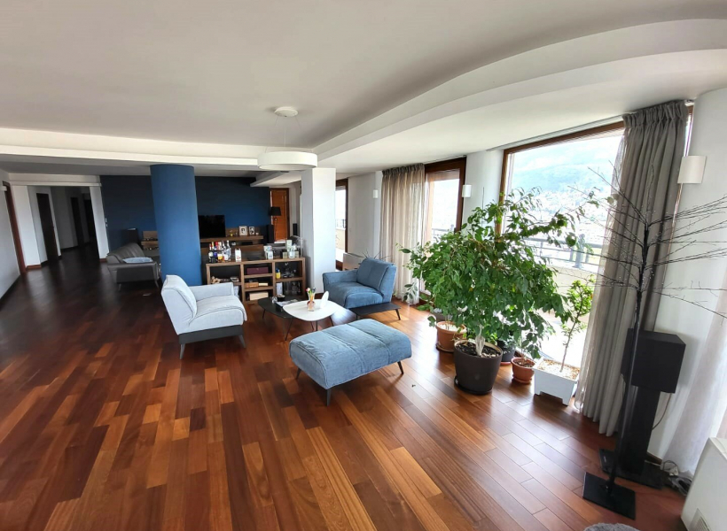 Станот располага со вкупна внатрешна површина од 202м2, односно со пространа и светла дневна соба со трпезарија, кујна, три спални соби, две бањи и гостински тоалет, како и кровна тераса со прекрасен, отворен поглед кон Водно со површина од 50м2 и останати тераси со вкупна површина од 70м2.