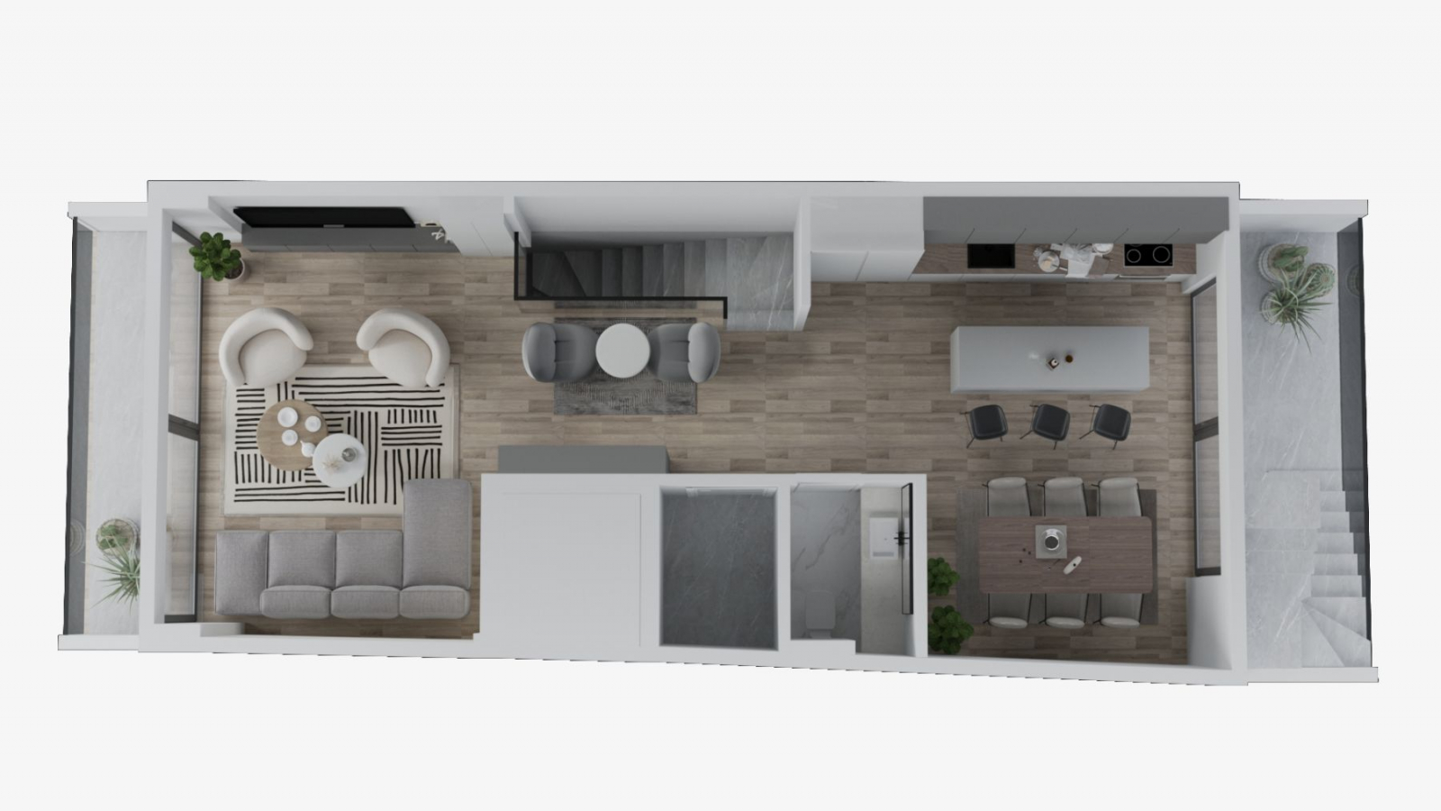 Станот има вкупна површина од 118м², со дополнителна rooftop тераса од 54м². Лоциран е во Центар, на мирна и урбана локација со лесен пристап до сите важни содржини, идеална за динамичен градски живот.