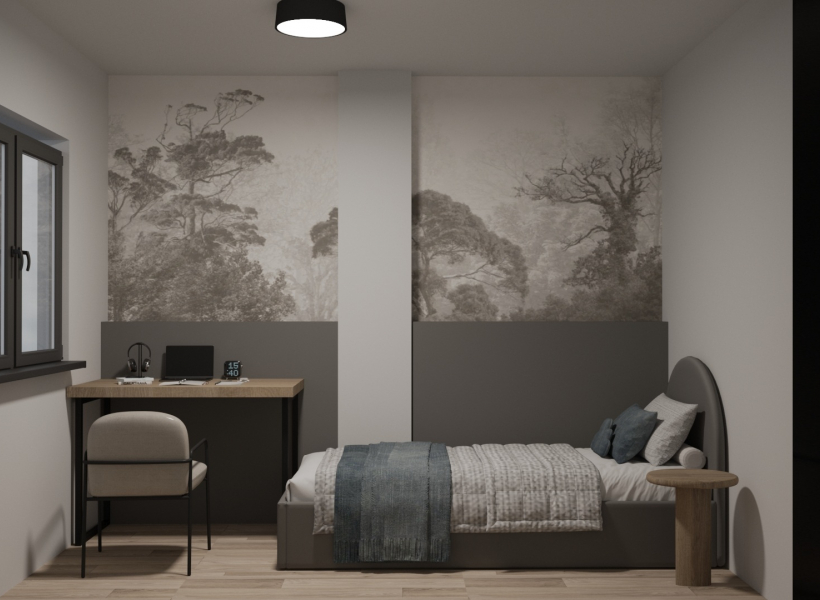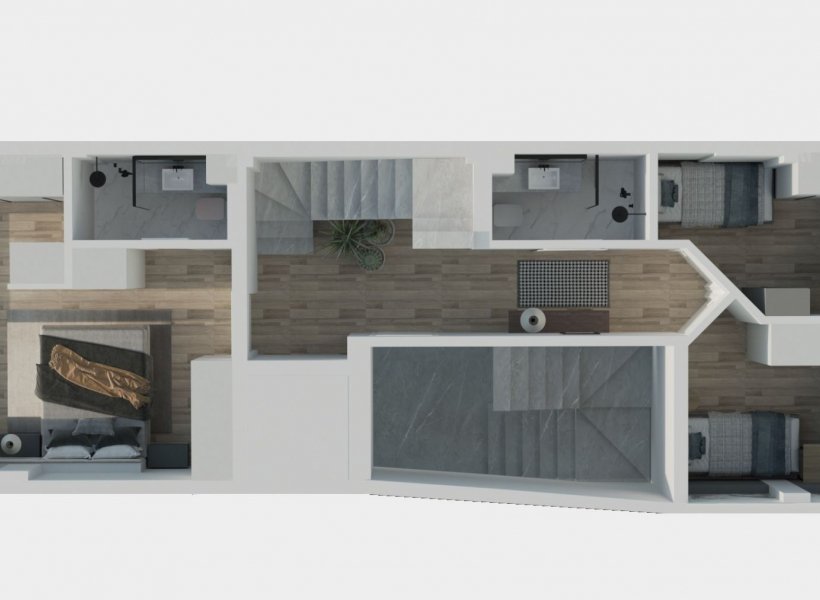4-ти кат (54м²) располага со главна спална соба со сопствен тоалет, две дополнителни спални соби, уште еден тоалет и тераса.
