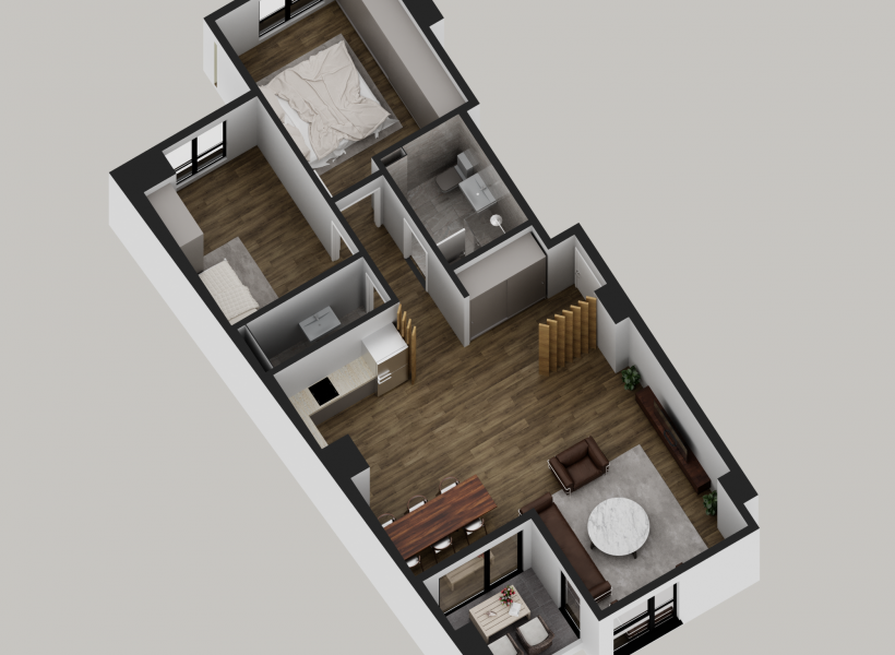Во понуда се современи станови од 47м² до 137м² во модерен станбен објект во Центар, во непосредна близина на Diamond. Становите се изведени со врвен квалитет и современи материјали, со посебен фокус на удобност, енергетска ефикасност и долговечност. Објектот, составен од приземје, четири ката и поткровје, вклучува вкупно 17 станови, нудејќи идеално решение за оние кои бараат современ, функционален и комфорен простор за живеење.