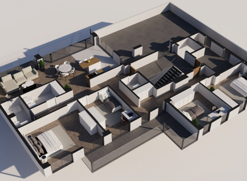 Пенхаусот нуди можност за целосно прилагодување на внатрешниот распоред според потребите и желбите на купувачот, вклучувајќи организација на просториите со преградни ѕидови, како и избор и распоред на плочки и таркет.