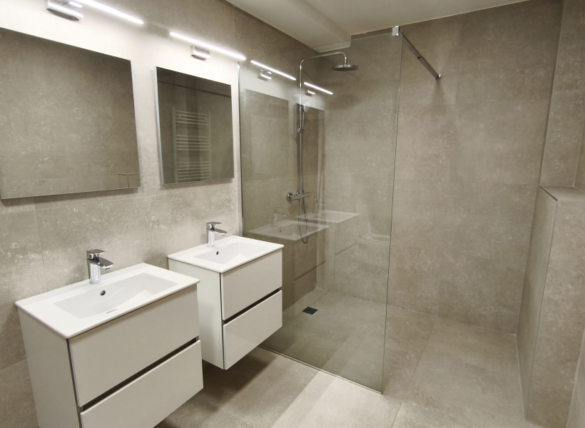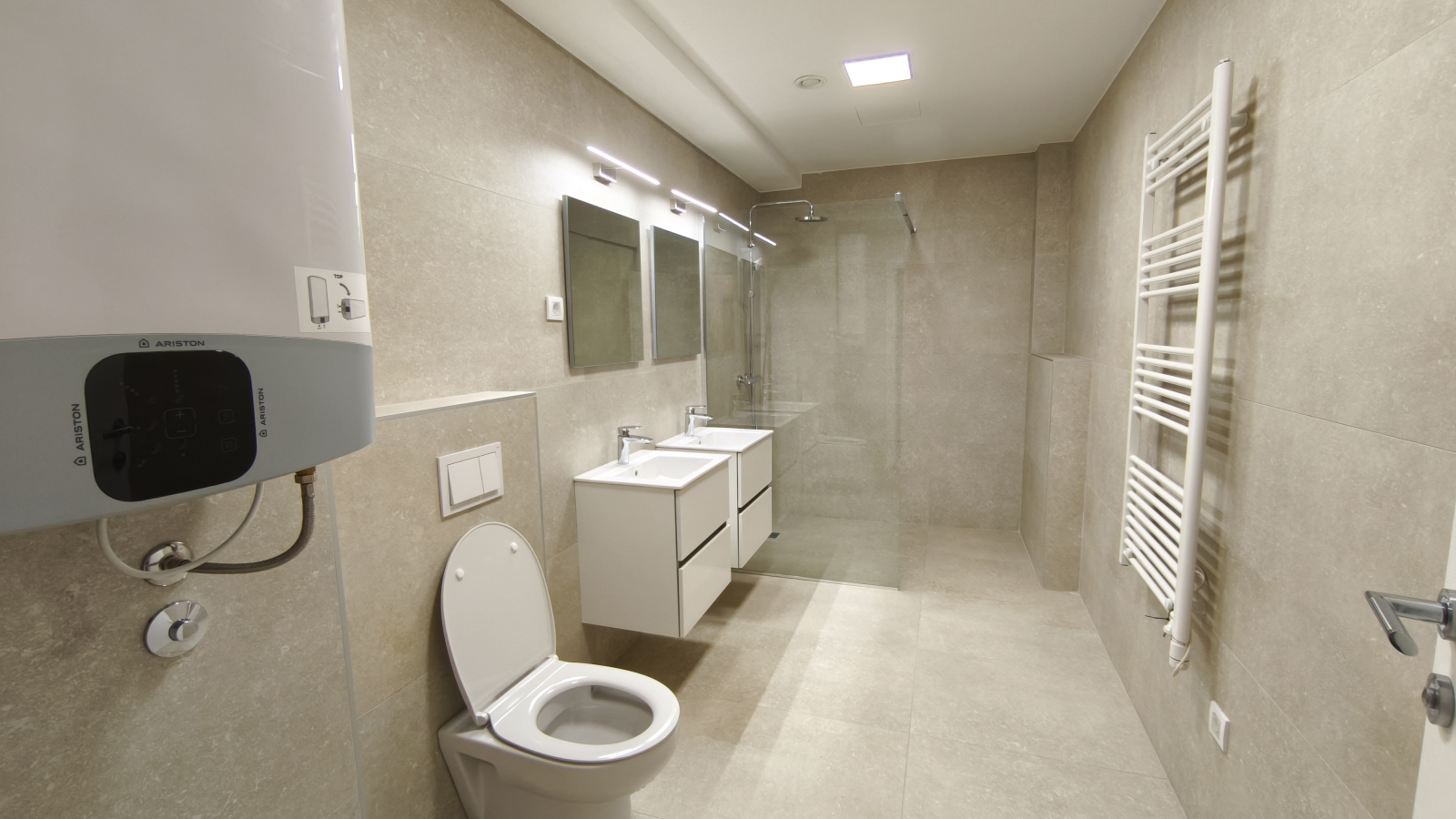 Станот се наоѓа на 1ви кат и располага со три спални и две бањи, голема дневна соба со простор за трпезарија и кујна, создавајќи чувство на комфор и практичност, со светли и пространи простории, а терасата нуди отворен поглед и совршено место за одмор.