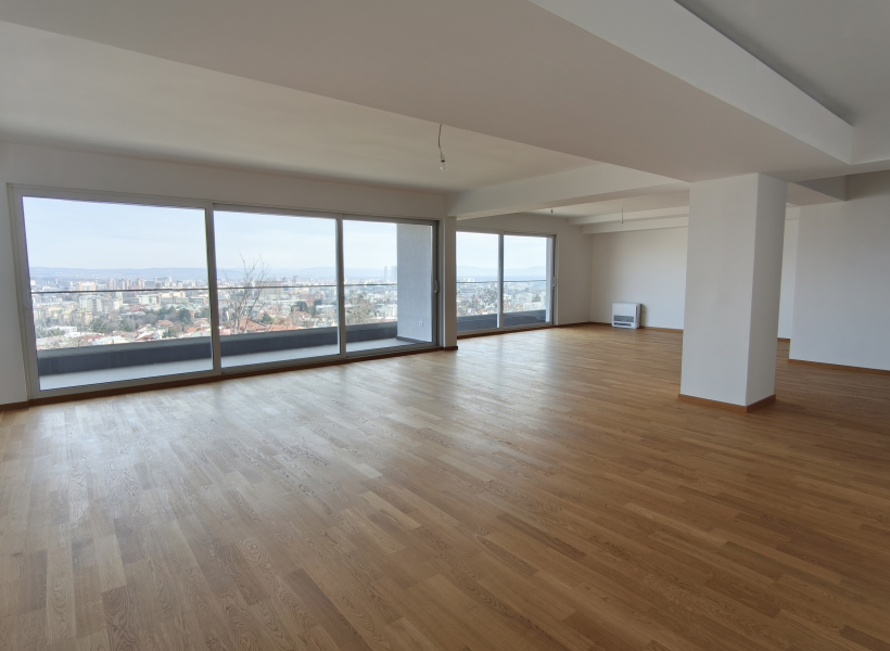 Се продава просторен стан со вкупна површина од 235м2, од кои 19м2 се тераса, лоциран на мирна и тивка локација на Водно