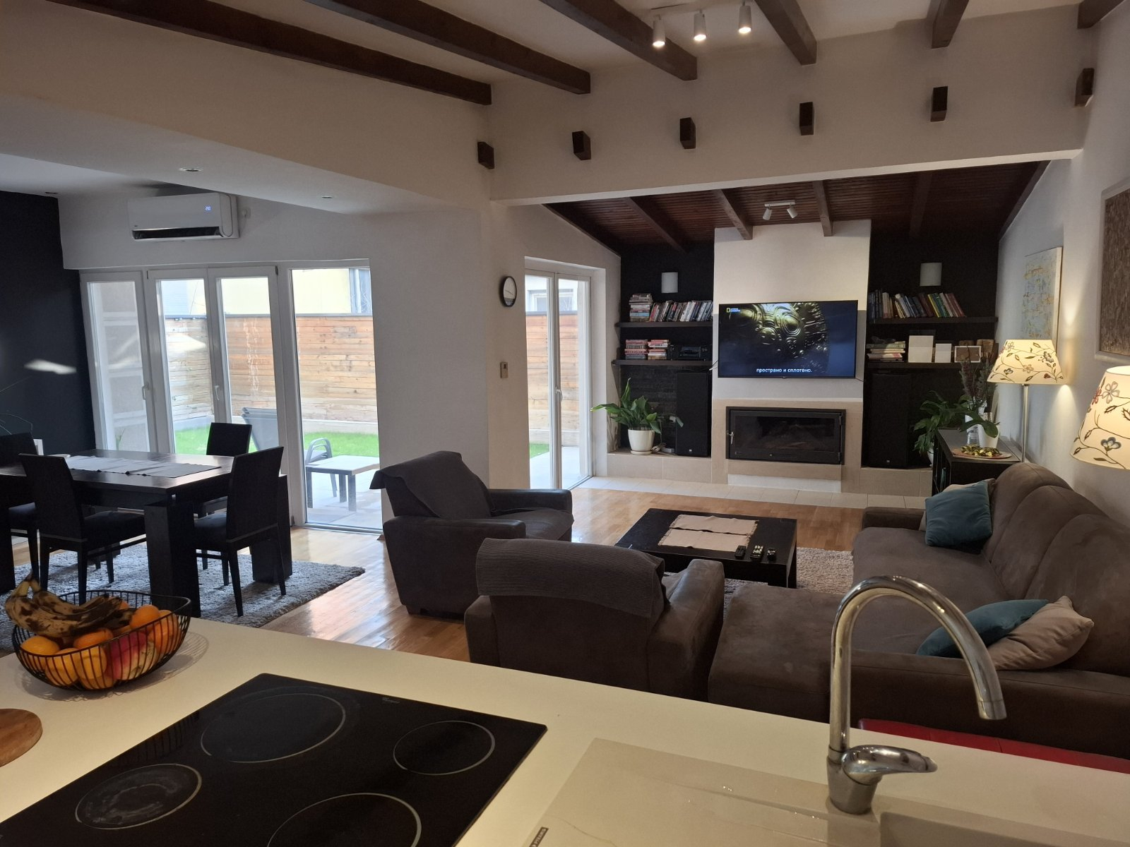 Греењето и ладењето се регулирани со топлотни пумпи и клими.