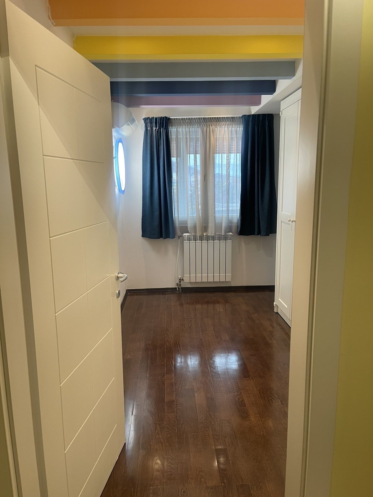Станот располага со вкупна површина од 104м2, односно со две спални соби, две бањи и гостински тоалет, пространа дневна со трпезарија и одделна кујна.