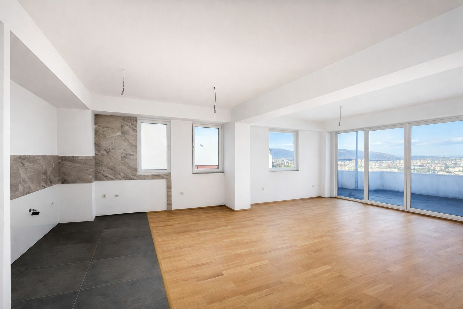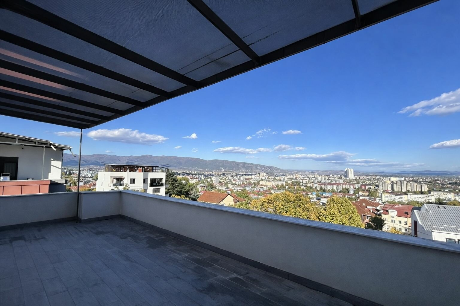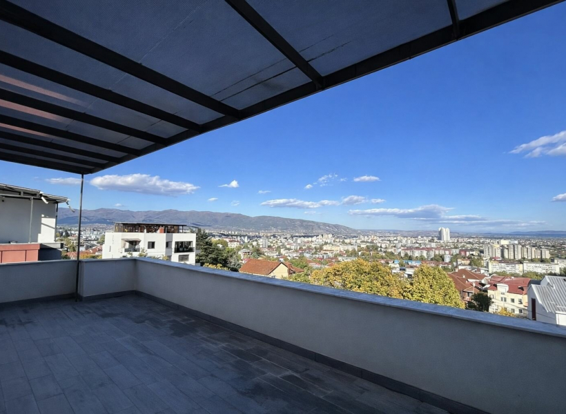 • Две големи тераси: Предна тераса 29м2 и Задна тераса (со поглед кон Водно) 20 м2, со можност за затворање и добивање дополнителна соба или гардеробер.