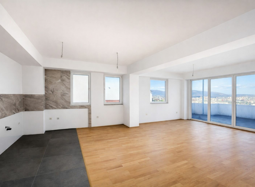 Се продава нов, невселен стан со вкупна површина од 105 м2 од кои 56м2 внатрешна површина. Станот се наоѓа на втори кат во зграда со приземје и два ката.