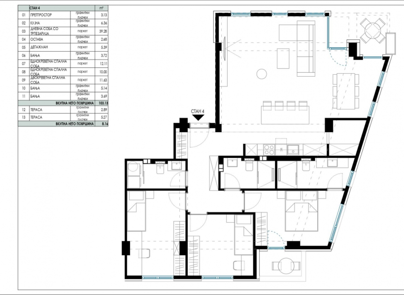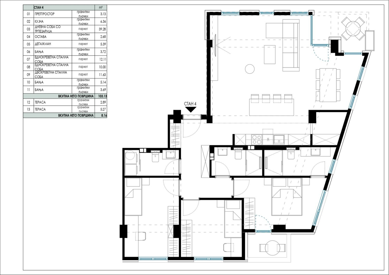 Се продава стан 111м2 во нов резиденцијален објект во Дебар Маало.