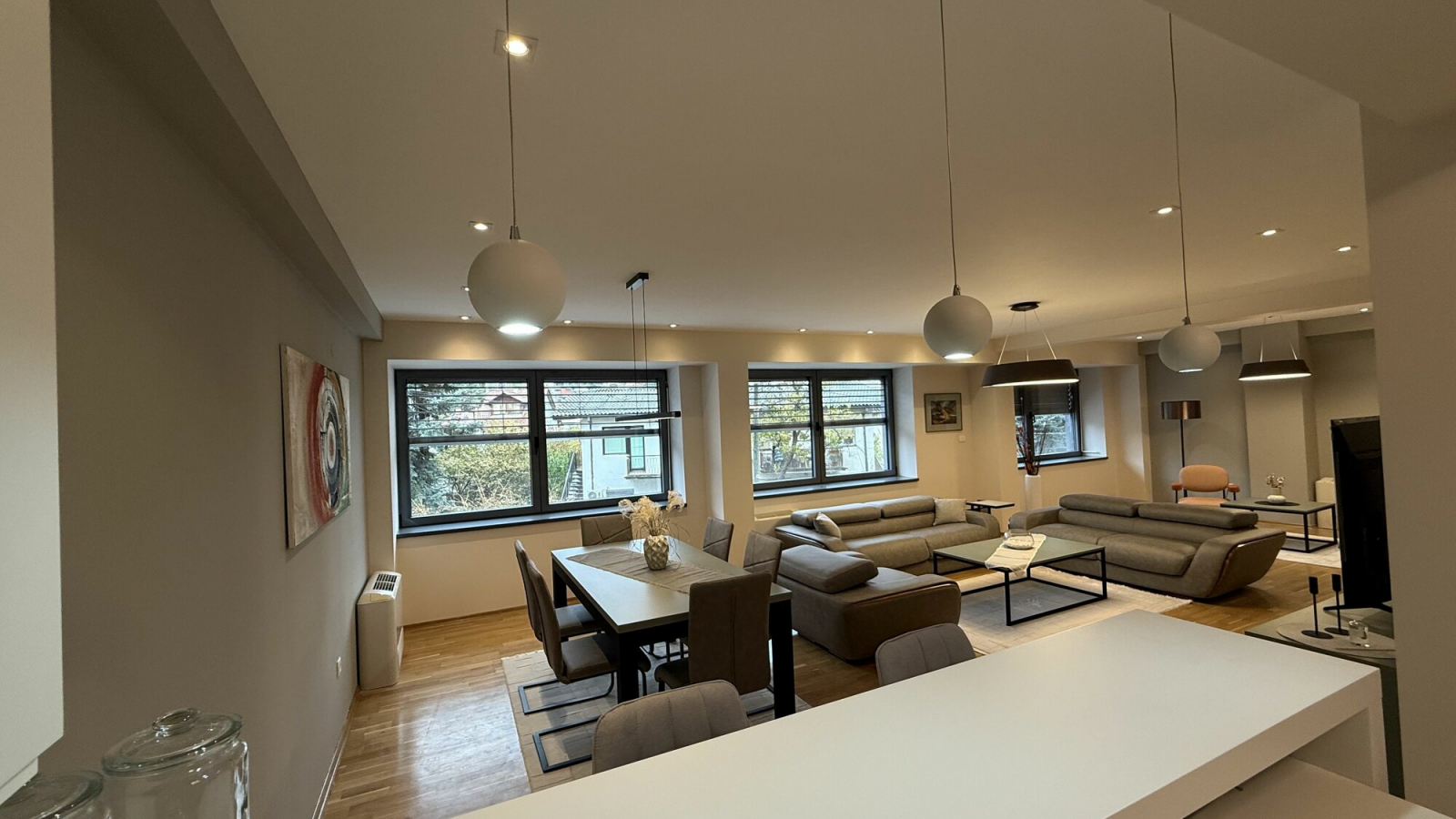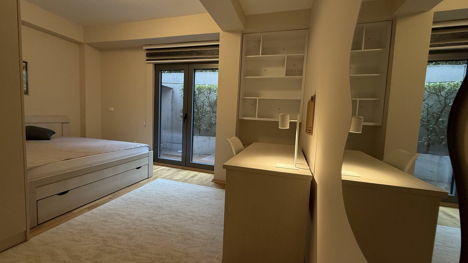 Има сопствено уредено дворно место и достапно е и паркинг место.