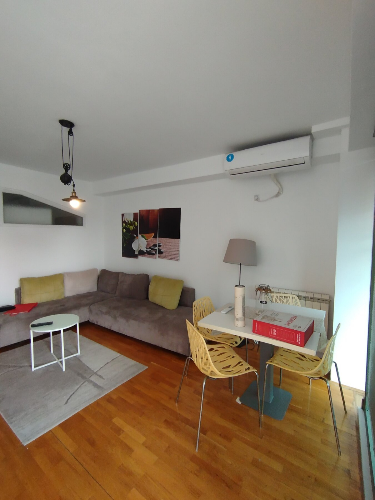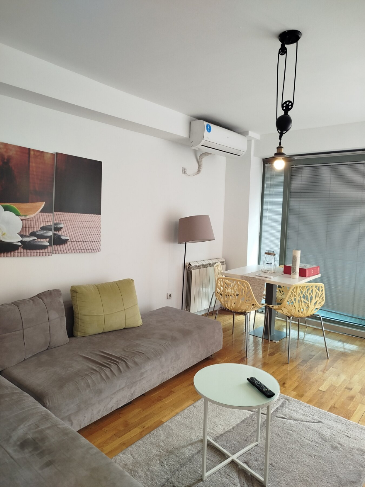 Греењето и ладењето во станот е регулирано преку централно градско парно и клима уреди.